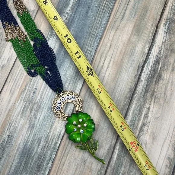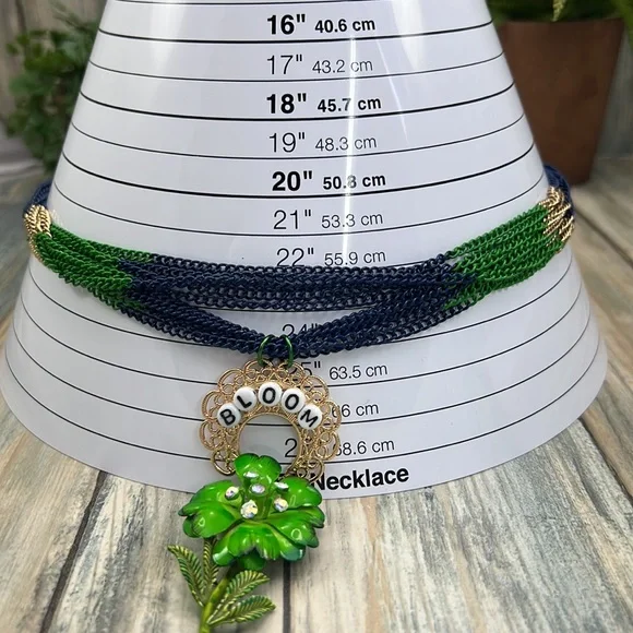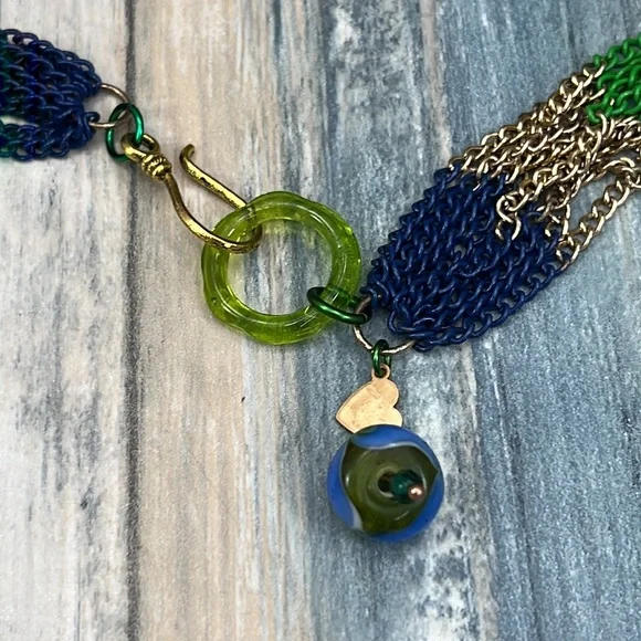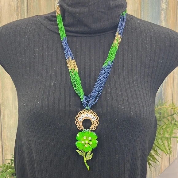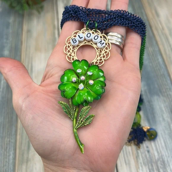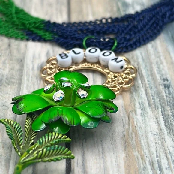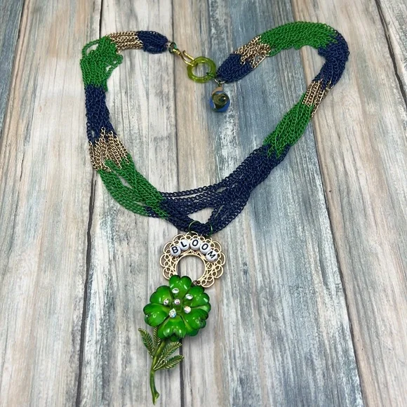 🌟👑Adorned Crown Artisan Assemblage multi chain enamel flower BLOOM green blue