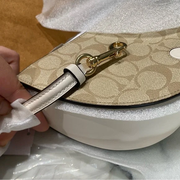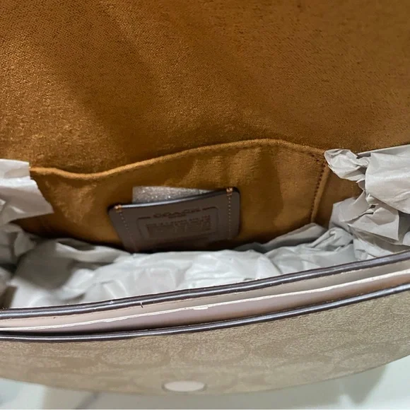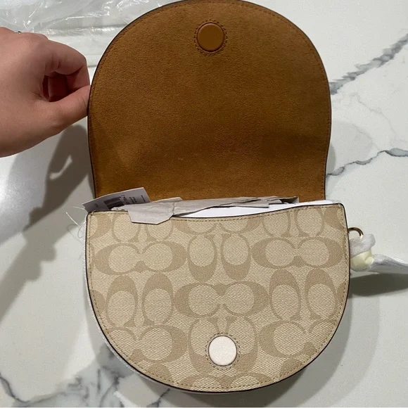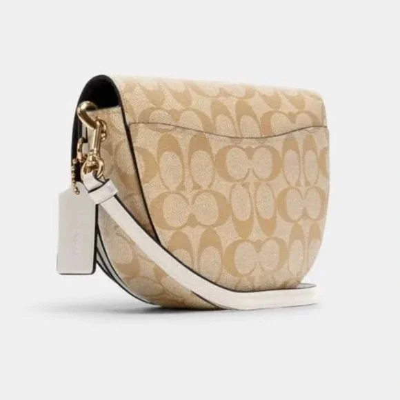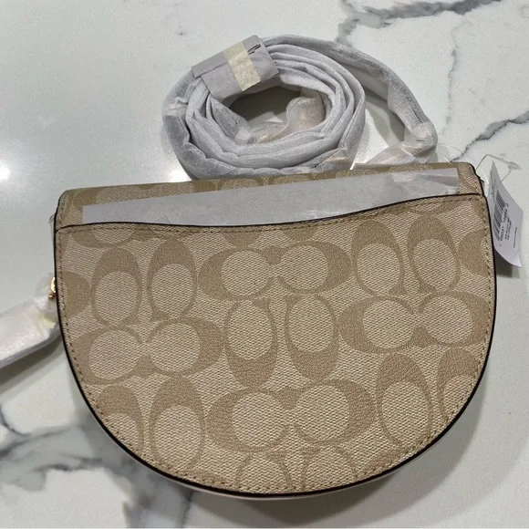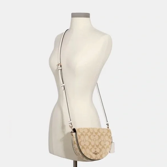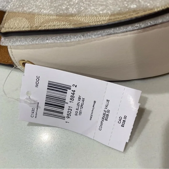 Brand new Coach Ellen Crossbody In Signature Canvas, coated canvas and smooth leather, and Inside multifunction pocket.With Magnetic snap closure, fabric lining, and Outside open pocket.Measurements-Detachable strap with 22" drop for shoulder or crossbody wear8 1/4" (L) x 6" (H) x 2 1/4" (W)Style No. C1430