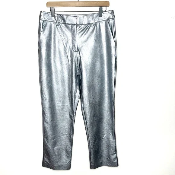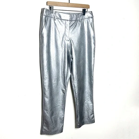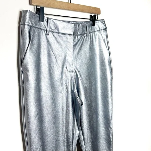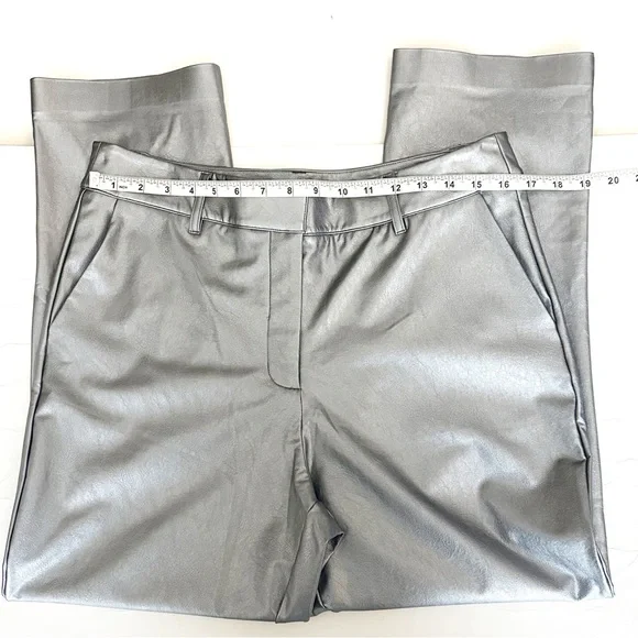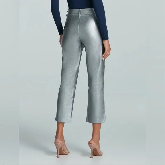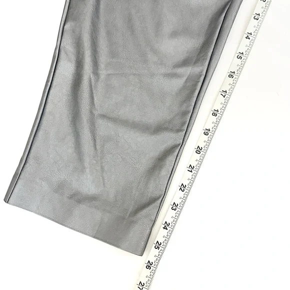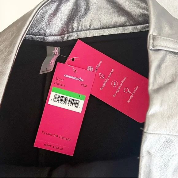 Commando Faux leather 7/8 Trouser in Platinum Size Large Elevate your style with the Commando Faux Leather 7/8 Trouser in Platinum. Crafted for both fashion and comfort, these trousers feature four-way stretch faux leather that offers a perfect fit while providing freedom of movement. Made from a blend of 55% polyurethane, 44% viscose, and 1% elastane, these trousers are both durable and soft against your skin.