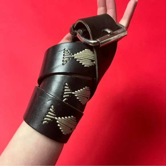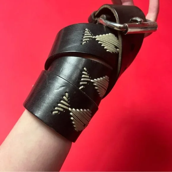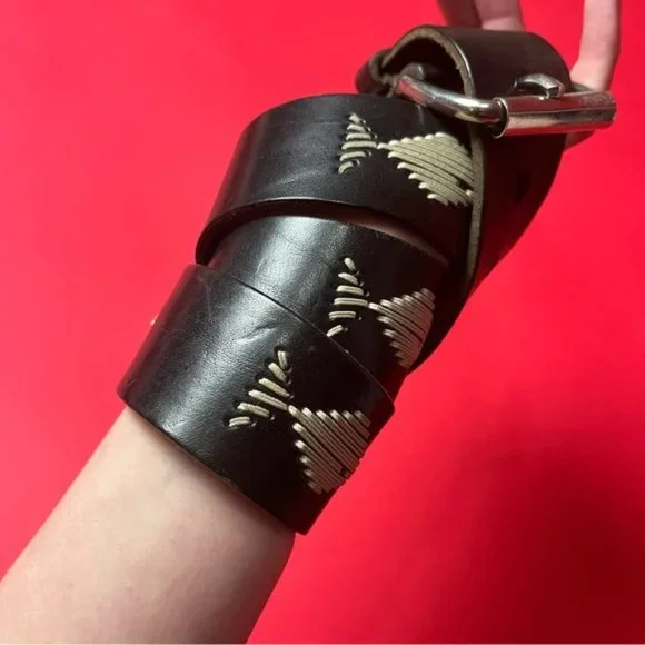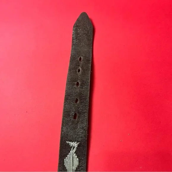 Fish Patterned Belt???? Black Belt with metal buckle and embroidery like fish patterns.In very good shape, hardly any wear. Gives me western / aboriginal vibes. Not 100% sure but feels like genuine leather Originally from the brand: unknown Original size tag states: unknown Measurements laid flat Length: 39”