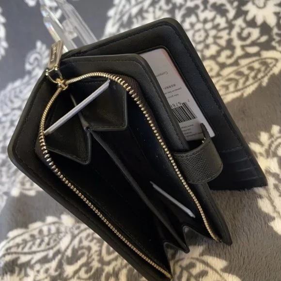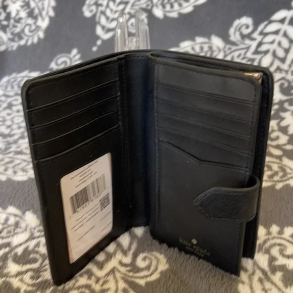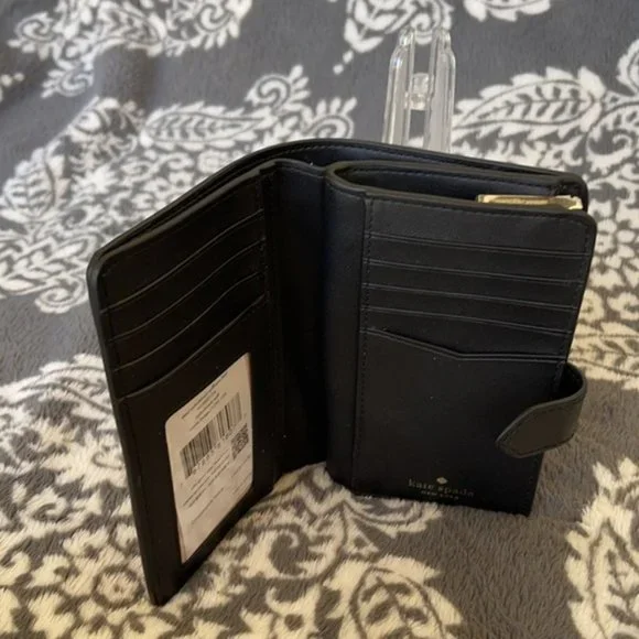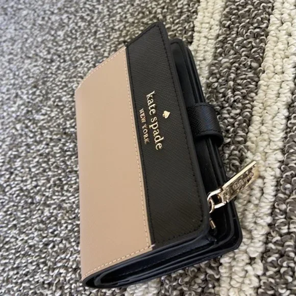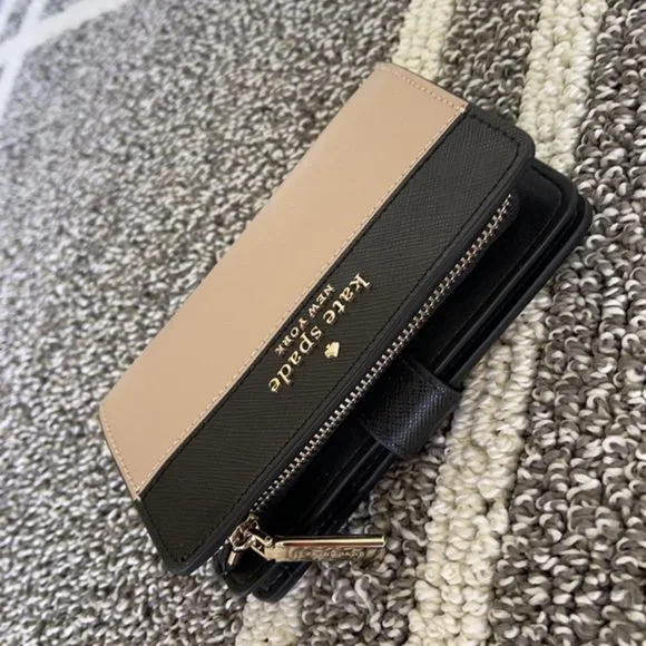 Kate Spade Staci Colorblock Medium Compact Bifold Wallet Warm Beige MultiColor: Warm Beige Multi4.5" h x 5.5" w x 1" dsaffiano leatherksny metal pinmount logotwo way spade jaquard lininginterior: 8 credit card slots, id window, 4 slip pockets, 2 bill foldsexterior: l-zip coin compartmentsnap closuredust bag not includedimportedstyle # wlr00124
