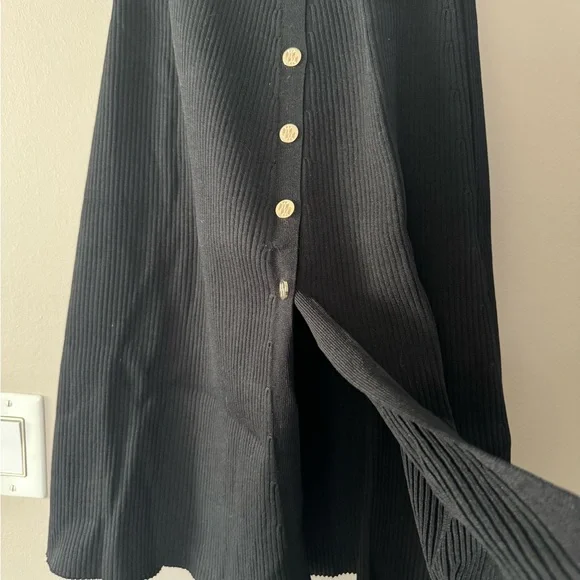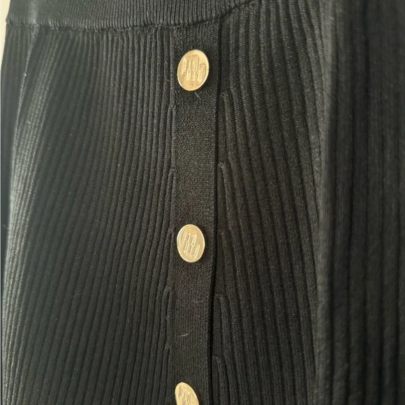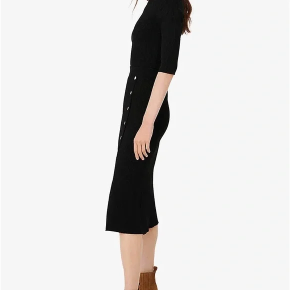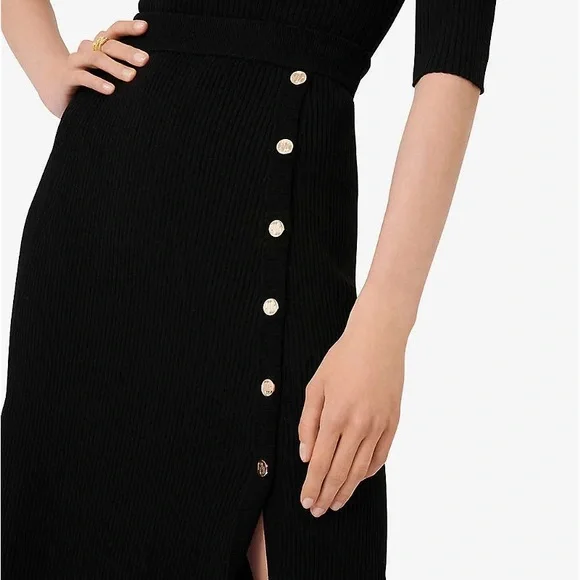 Maje Black Jupiter Gold-Tone Button Knitted Midi Skirt Size 34