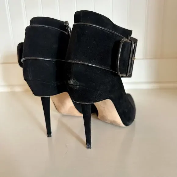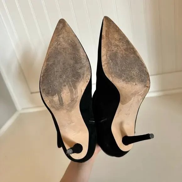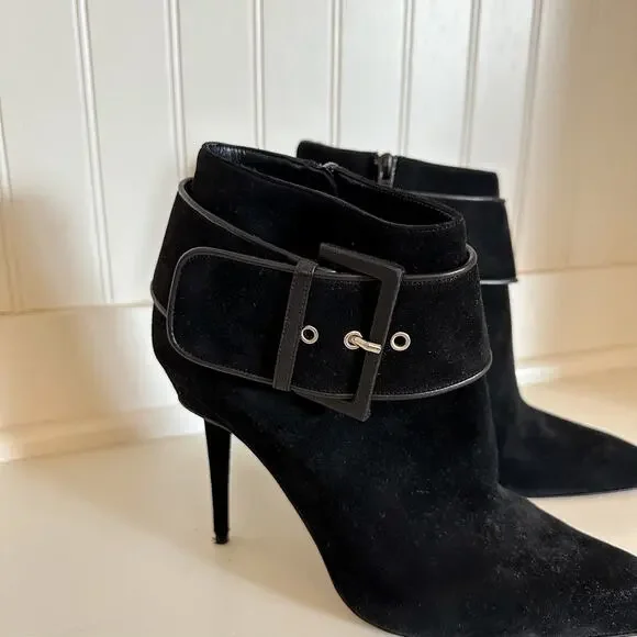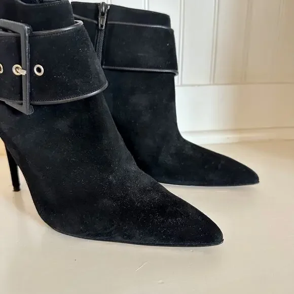 Condition: Excellent, preowned conditionDetails: Manolo Blahnik Suede Buckle Pointed Toe Ankle Boot - Size: 39.5 (9.5) - Color: Black - Material: Suede leather - Features: Pointed toe - Stiletto heels - Buckle ankle detail - Side zipper closure - Love the item, but not the price? Make me an offer!Bundle with 900+ other items available for sale in my closet!