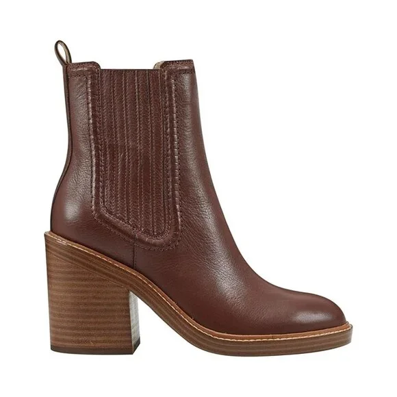 Marc Fisher LTD Halida Dark Natural Leather Heeled Chelsea Ankle Boots - NEW IN BOXComplete your look by wearing Marc Fisher LTD™ Halida booties. An almond toe with a pull-on closure makes it easy to put on. The booties are crafted from leather upper and man-made lining for superior comfort. An almond toe, mid-block heel, and stretchy ribbed gores on the side let you wear it quickly.Heel Height: 3 1⁄7 in20% OFF WITH FREE SHIPPING - ON SAWYER RODE OUTFITTERS (Link in bio)