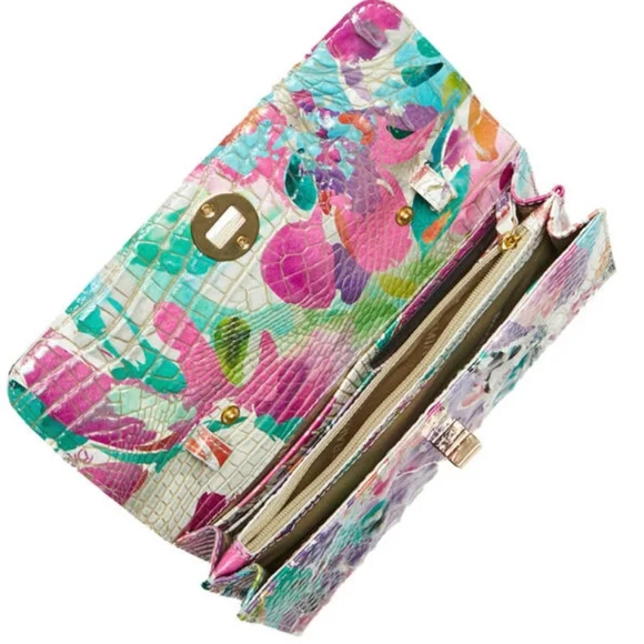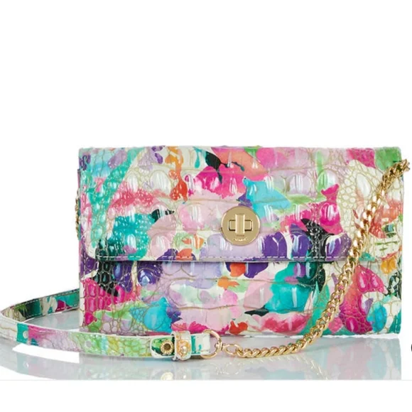 NWT BRAHMIN POLINADaylilyMelbourne Crossbody Genuine Leather.The Polina is a new twist on our well-loved Polly crossbody. Updated with ultra-chic new details (like the chain leather strap and turnlock closure) - Polina is on-trend and sophisticated. The back zip pocket and interior center divider keep things effortlessly organized. This also features 12 interior credit card slots for easy access to your essentials.DESIGN NOTESFeatured in Daylily Melbourne, a fiercely feminine floral. The swirling watercolors add artistry and expressive energy to your season. This fresh twist on florals is perfect for making statements this spring. Made with genuine croc-embossed leather.CrossbodyChain leather adjustable crossbody strapTurnlock flap closureBack zip pocketInterior center zip pocket divider12 interior CC slotsIt goes without dust bag .Measurements on photos.Color may look different in pictures due to lights, computer monitor settings, camera, etc. Ships fast from my clean, smoke free home.
