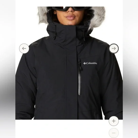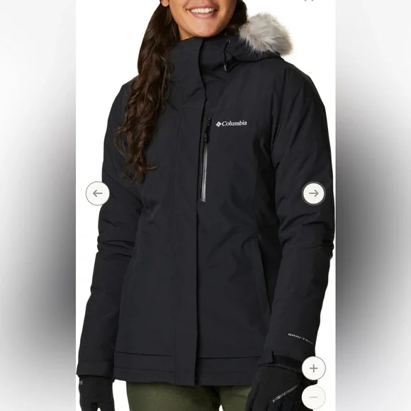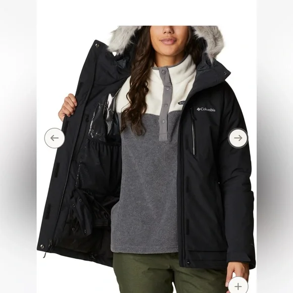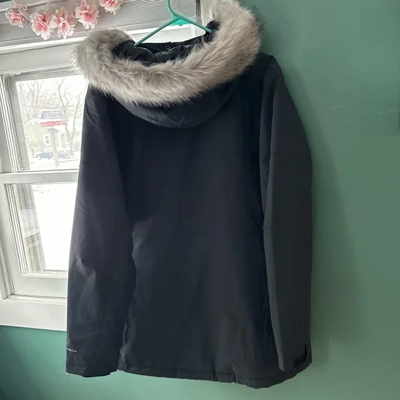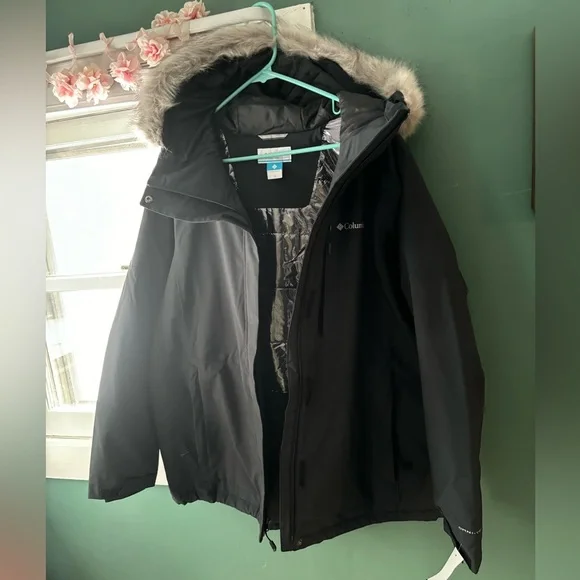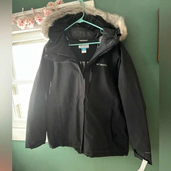 New with tags. Columbia Women’s Plus Size Ava Alpine Insulated Hooded Ski/Winter Jacket. 1x in Black. Heavyweight jacket. Waterproof shell. Attached hood with removable faux fur trim. Adjustable sleeve cuffs. Thermal reflective lining interior. 2 exterior zip pockets, 1 zip chest pocket, ski pass pocket, interior security pocket, interior goggle pocket. Hits at waist. SO warm and cozy. Classic black to go with everything. Perfect for winter sports or an everyday winter jacket!! Retail $290.Omni-Tech™ critically seam sealed prevents moisture from seeping into crucial areas using waterproof-breathable fabric, so you stay dry and comfortable in the rainOmni-Heat™ thermal-reflective lining retains warmth using breathable silver dots that reflect body heat, so you stay warm and comfortable as temps drop2-way comfort stretch for ease of movementAttached, adjustable hood seals out the elementsAdjustable, snap-back powder skirt blocks wind and snowSki pass pocketInterior security pocket for valuablesGoggle pocketAdjustable sleeve cuffs secure the fitComfort cuffsDrawcord-adjustable hem secures the fitRemovable faux fur for warmth and custom stylingInternal key clipCenter Back Length: 28"Imported