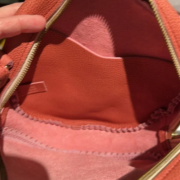 Portland Leather Goods large circle crossbody in watermelon. Not available on website. NIB. Large MeasurementsWidth: 9"Depth: 2.5" Weight: 1 lb 3 ozAdjustable Crossbody StrapLength: 42" to 53.5"Width: 0.75"