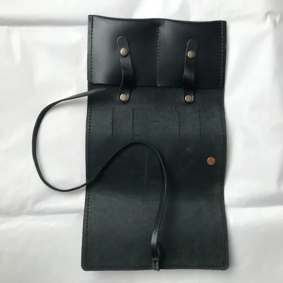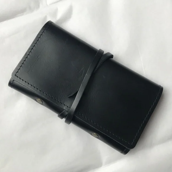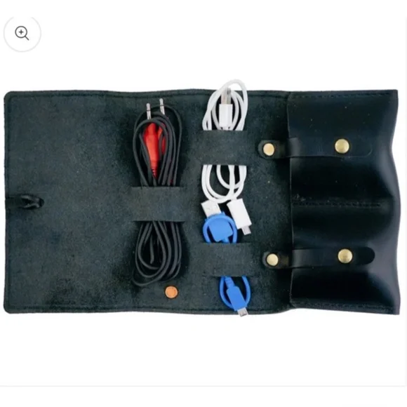 Easily pack your electronics cords and other knick knacks with this stylish travel roll.Our travel cord roll was designed with maximum functionality in mind. Crafted with top-grain cowhide leather, antique brass hardware, and machine stitching. The Sidekick is packed with utility in a convenient trifold design. The interior has 2 pockets, 3 cord slits, and 2 cord straps, which can be used to hold AirPods, wall charging blocks, cords, and USB drives. Use the wrap tie closure for added security.•2 cord straps with snaps•Pockets for adapters/AirPods•Holds cords/earphones•Wrap tie closure•Machine stitching/Antique brass hardwareMeasurements: 14.5”x 6” (open) and 3.75”x6” (closed)Item is in pre-owned gently used conditionNo heavy signs of wear.Photos are the most accurate representation of item.Item ships from a pet friendly home.Bundle with other items from my closet for a great deal and save on shipping!Thank you for checking out my closet! Reasonable offers welcome.
