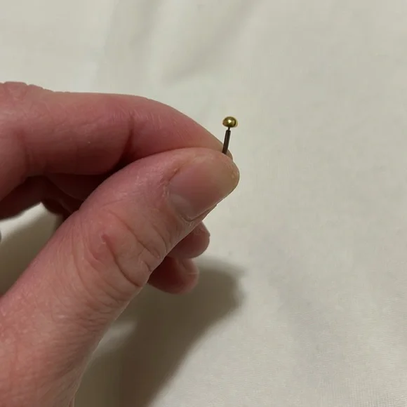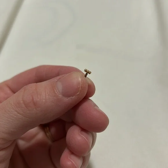 All earrings designed for new piercings with backs that are either solid gold or medical grade titanium. One pair of small real diamond/14k gold studs. Ball back (one ball missing)One solid gold half crescent. One solid gold small circle. Solid gold bar. Solid gold three small balls. These were bought directly from a jeweler who is a certified piercer for a lot more than asking price.