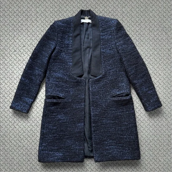Excellent condition Made in HungaryRetail Price: $1150Color: Black/BlueShawl CollarKnee-LengthOpen FrontFabric: 73% Wool, 19% Cotton, 4% Polyamide, 4% Viscose; Combo 100% WoolSize: 38 EUR, US2-4, XS-SShoulders: ~15 1/2Chest: ~19 1/2Sleeves: ~23 3/4Length: ~34 1/2#stellamccartney #fashion #designer #topfashion #celebrity