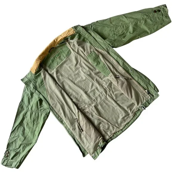 Sundazed & Outside Society (manipulating objects possessed of magical power)SOS | sundazed.io/products/story-for-outdoor-people-plain-weave-cotton-blend-mesh-lined-field-jacket-green-xlWunderschöner, Exotic Vintage, Bespoke & Handmade Novelty In ActionBrand: Story 'For Outdoor People'Origin: GermanyCondition: NewVintage (mint condition or new without tags)Look: Deliberate Quest for Security of the Values that Are Enjoyed by Grace in Our Happy MomentsDepartment: UnisexTag: EUR56, US46Fabric Type: MicrofiberShell: Cotton BlendComposition: 75% Bomull, 25% PolyamideLining: MeshLining Composition: PolyamideStyle: ParkaLength: Mid-LengthClosure: ZipFeatures: Full Zip, Pockets, Upper Zip Pocket, Hidden Waist Drawstrings, Hem Drawstrings, CollaredMeasurements (cm):Chest: 64Length: 80Shoulder: 55Sleeve: 65Hem: 60SKU: 006728