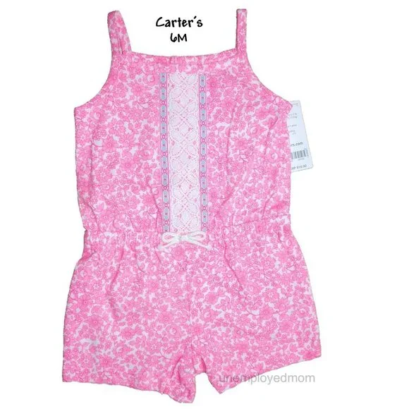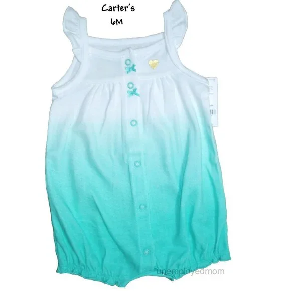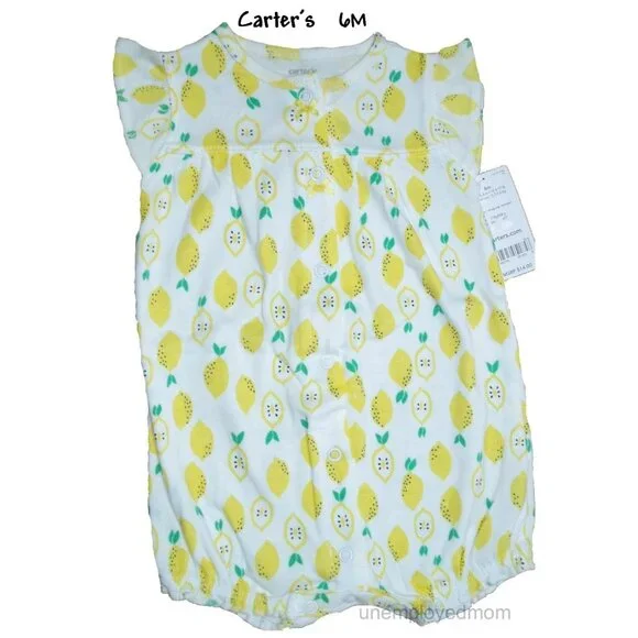 This is for 5 Items Total3 Romper & 2 Sun Hatby Carter's, Jumping BeansBrand New with Tags$78.00Romper's Size 6M,Sun Hat's Size 3-9M, 6-18M Carter's Pink Romper Floral CrochetSize: 6M4 Snap in BackElastic Waist100% cottonCarter's Yellow Lemon Flutter Romper Size: 6MSnap Up Front100% cottonCarter's Turquoise Blue Dip Dye RomperSize: 6MSnaps up the Front100% cottonCarters Sun Hat Blue Bow Chambray Size: 3-9MWide Briminside is linedChin Strap100% cottonSun Hat Pink Swiss Dot Ruffleby Jumping BeansSize: 6-18MChin Strap inside is linedKW NWT 6 m mo month baby infant kids children summer baby shower gift cap