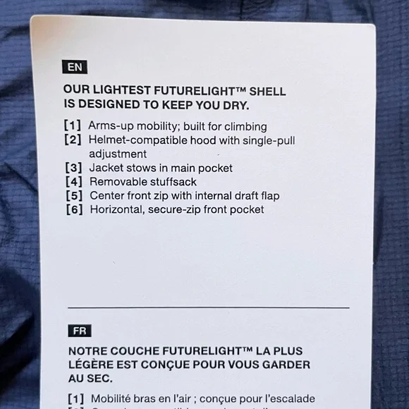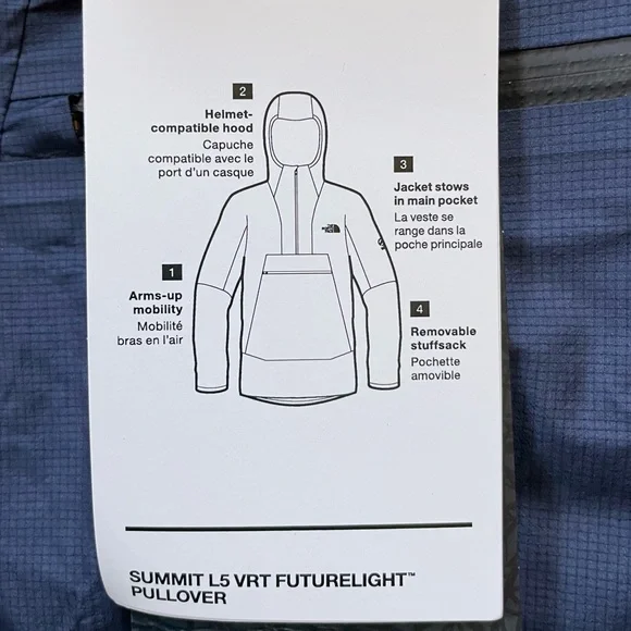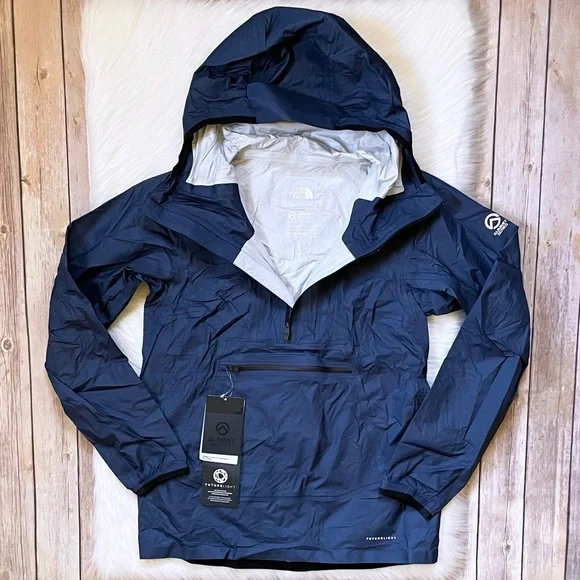 New With Tags- The North Face Women’s Summit L5 VRT FUTURELIGHT Pullover Shell In Shady Blue With Featherweight Seam-Sealed FUTURELIGHT Waterproof Breathable Windproof Three-Layer Fabric, Helmet Compatible Adjustable Hood, Arms-Up Mobility, Exposed Front Quarter Zip Closure, Horizontal Zippered Pocket And Elastic-Bond Cuffs And Hem. Jacket Stows In Main Pocket. Standard Fit.