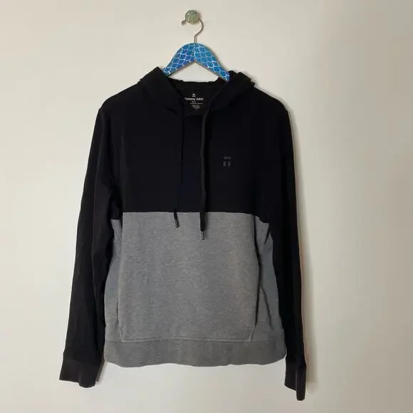 TOMMY JOHN Black Onyx Medium Grey Colorblock Hoodie Soft Stretch Go Anywhere