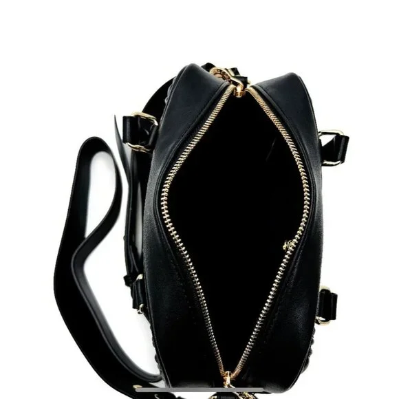 This Valentino Orlandi crossbody bag features exquisite black leather with a quilted design, complemented by elegant gold-tone accents. The detachable strap allows for versatile styling, while the compact size ensures convenience without sacrificing style. Ideal for those who appreciate luxury and craftsmanship in their accessories.• Quilted leather design• Gold-tone hardware• Detachable crossbody strap• Secure zip closure• Interior pocket for essentials