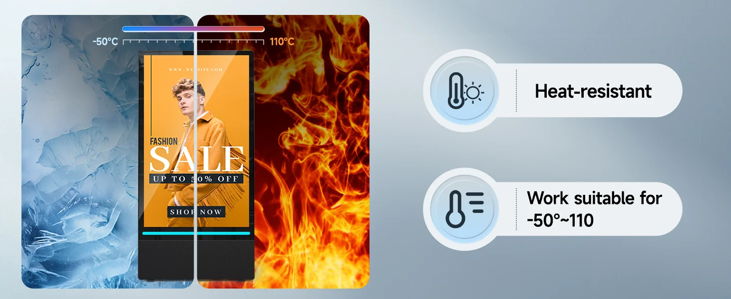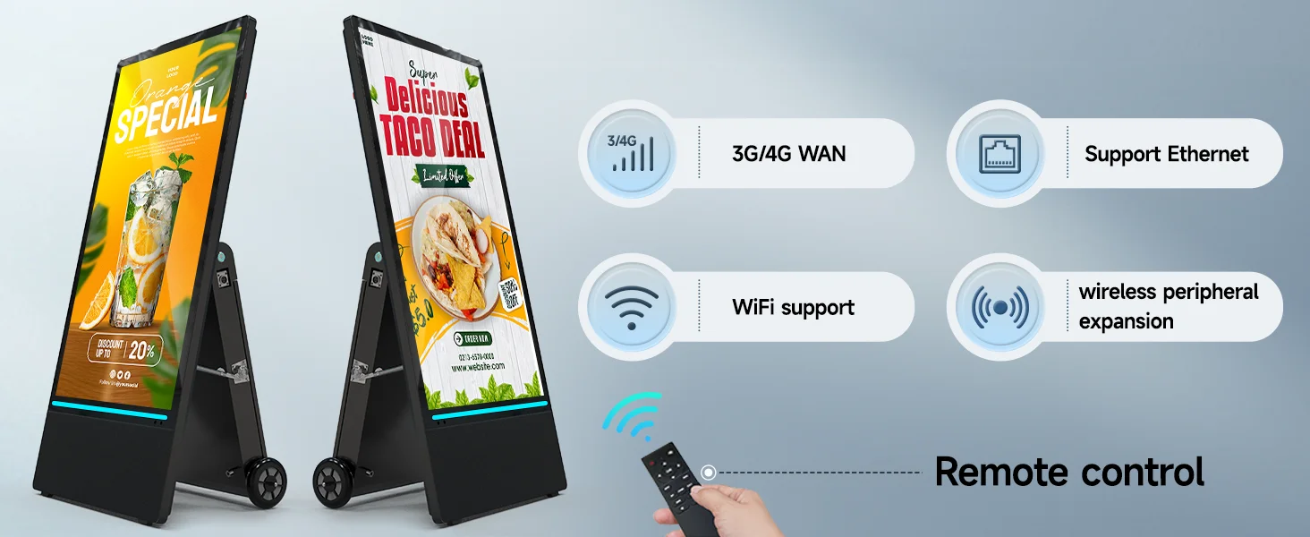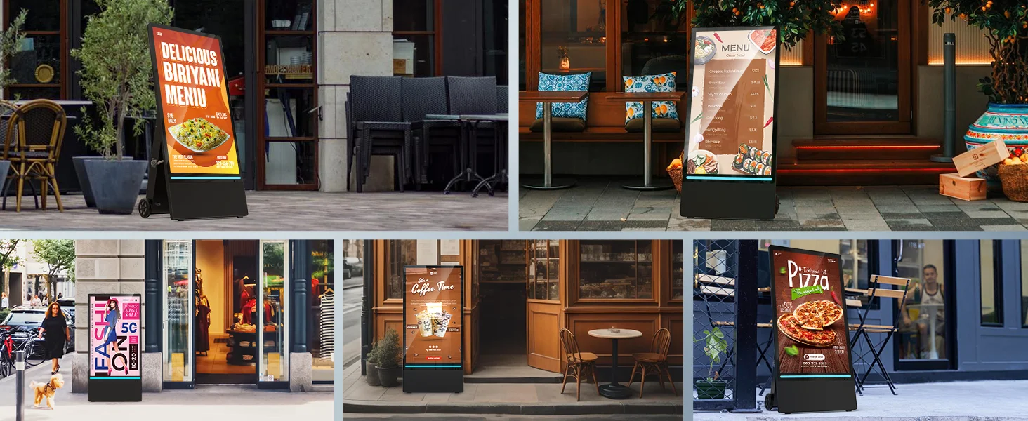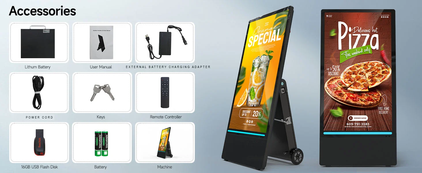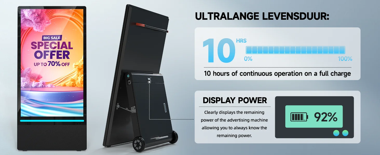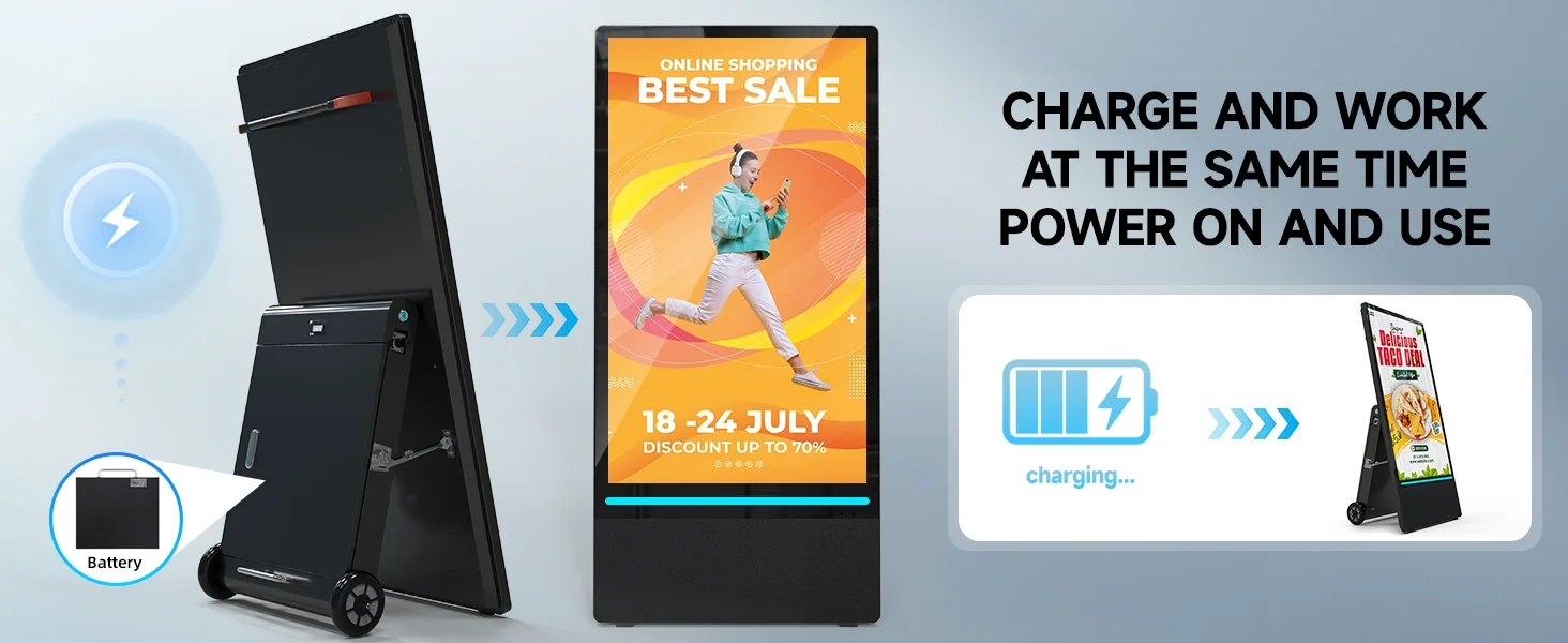 🔋【High-performance endurance】Portable digital signage with automatic brightness adjustment, high temperature resistance, charging 7-8 hours can continue to work for 10 hours without frequent charging, to ensure stable operation for a long time, to provide continuous display services for your advertisement.