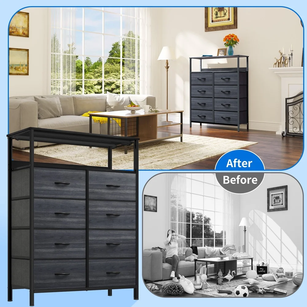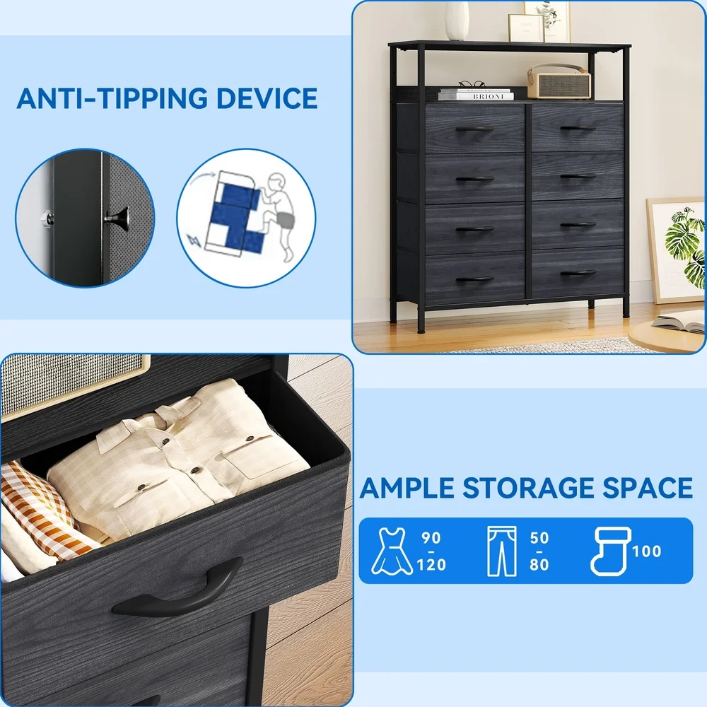 8-Drawer Fabric Dresser Steel Frame Storage Solution Clothes Accessories Easy Assembly Robust Design Wall Anchor Included
