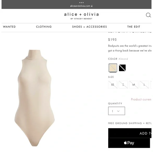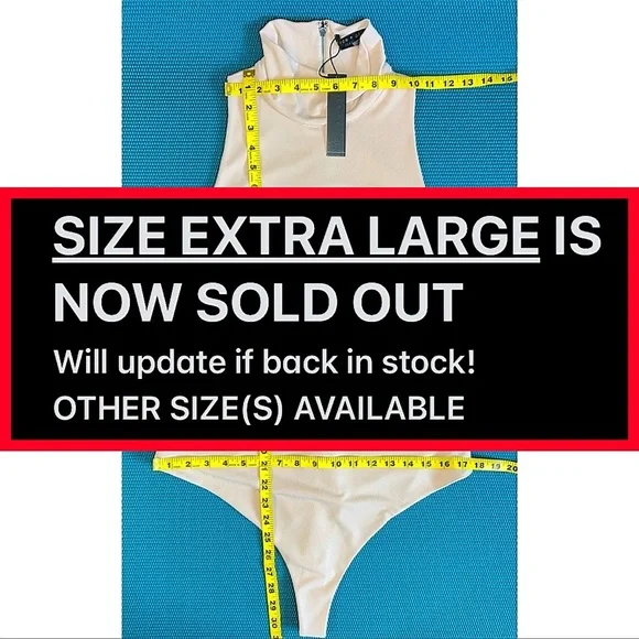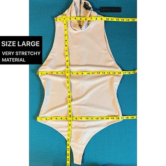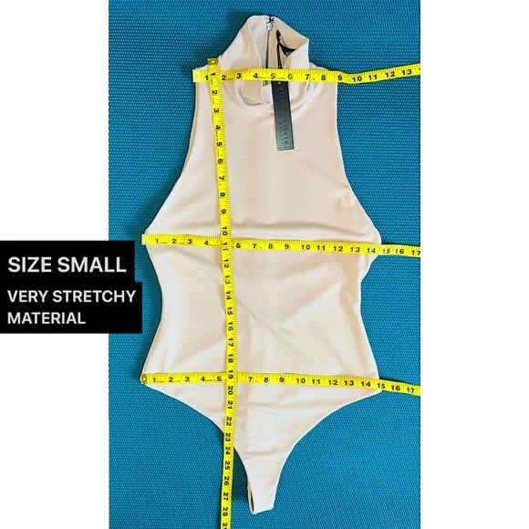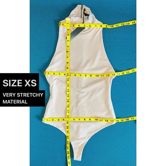 SAME DAY OR NEXT BUSINESS DAY SHIPPING ON ALL ORDERS 🚚 📦 SWIPE ↔️ OR SCROLL ↕️ TO OBSERVE VISUAL MEASUREMENTS AMONGST ADDITIONAL PHOTOS.➡️ All A+O pieces in my store are 100% authentic, unworn / never tried on and supplied directly through the designer.Bodysuits are the world's greatest invention, thank you very much. Plus, it's got a thong back because we've always got your back.PAIR WITH FRALEY ALMOND SKIRT OR DONALD ALMOND JEAN (SOLD SEPARATELY)STRETCHY FABRIC (RELAXED MEASUREMENTS AMONGST PHOTOS) — STRETCHES BOTH 1) LENGTH WISE / ALONG TORSO AND 2) ACROSS / WIDTH.FOR EXAMPLE, SIZE EXTRA SMALL (XS) ARMPIT TO ARMPIT STRETCHES UP TO 17” ACROSS (AT FRONT) & WAIST STRETCHES UP TO 15” ACROSS (AT FRONT)TurtleneckSleevelessFittedThong backAlmond colorExposed zipper back closure95% polyester 5% elastaneDesigner details : Fits true to sizeDry clean onlyOBSERVE MEASUREMENTS AMONGST PHOTOS FOR EACH SIZE Beige | Cream | Almond | Light Brown | Casual | Semi Formal | No Sleeve | Hot | Sexy | Cute | Boho | Cool | Stacey Bendet | Pretty | Beautiful | Tan | SwimSuit | Bathing Suit | Beach | Harmon | One Piece | Chantilly | Marley | Pool | Summer | Party | Playsuit | Leotard | Stretch-crepe | Thong Bodysuit