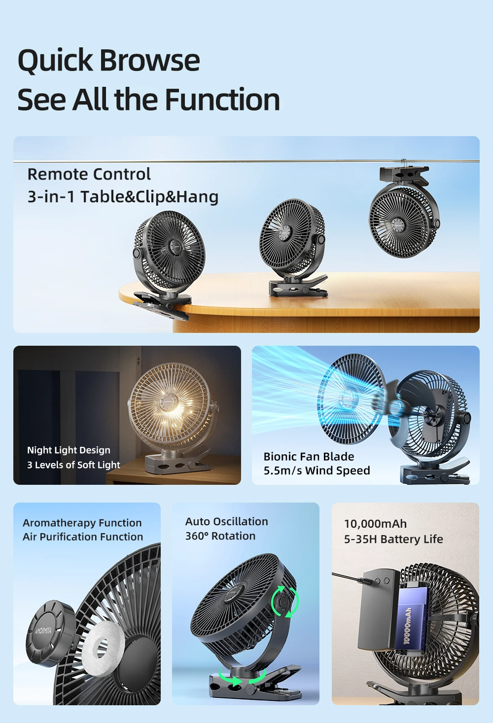 • Natural Wind Setting, Save Enegy and Protect Your Health