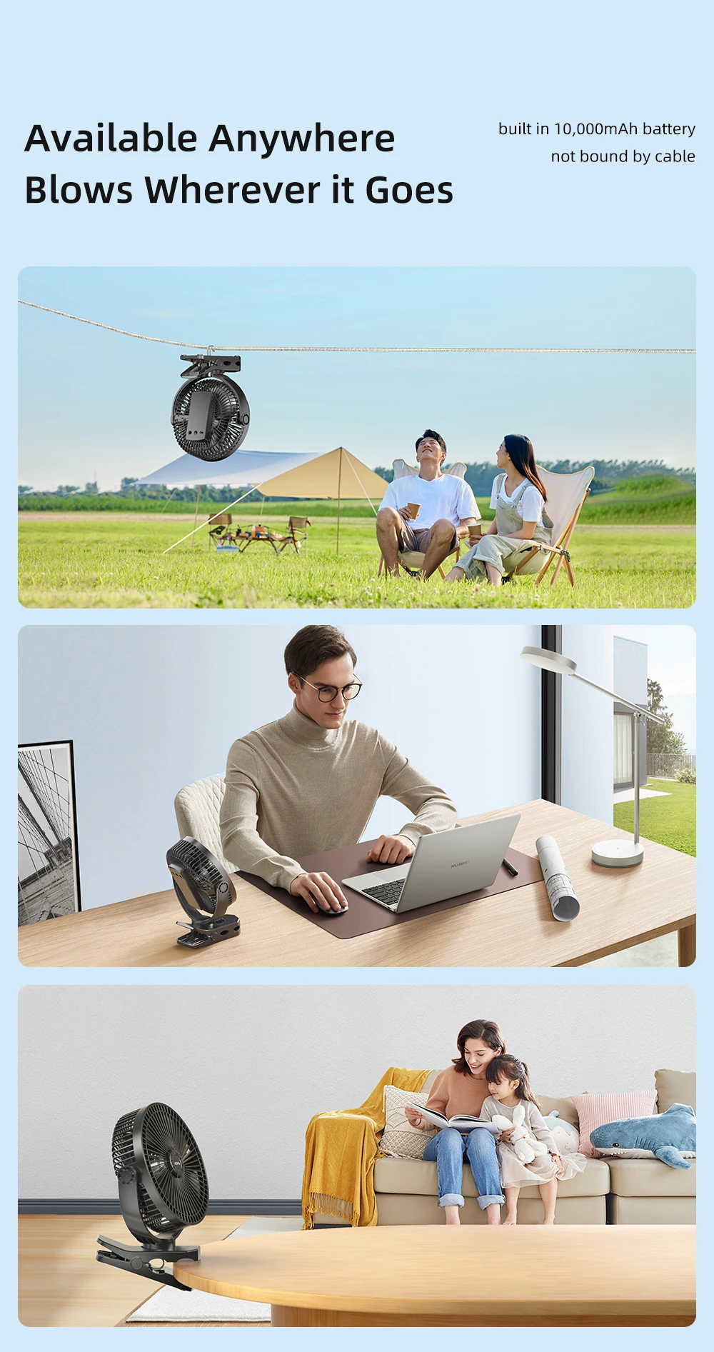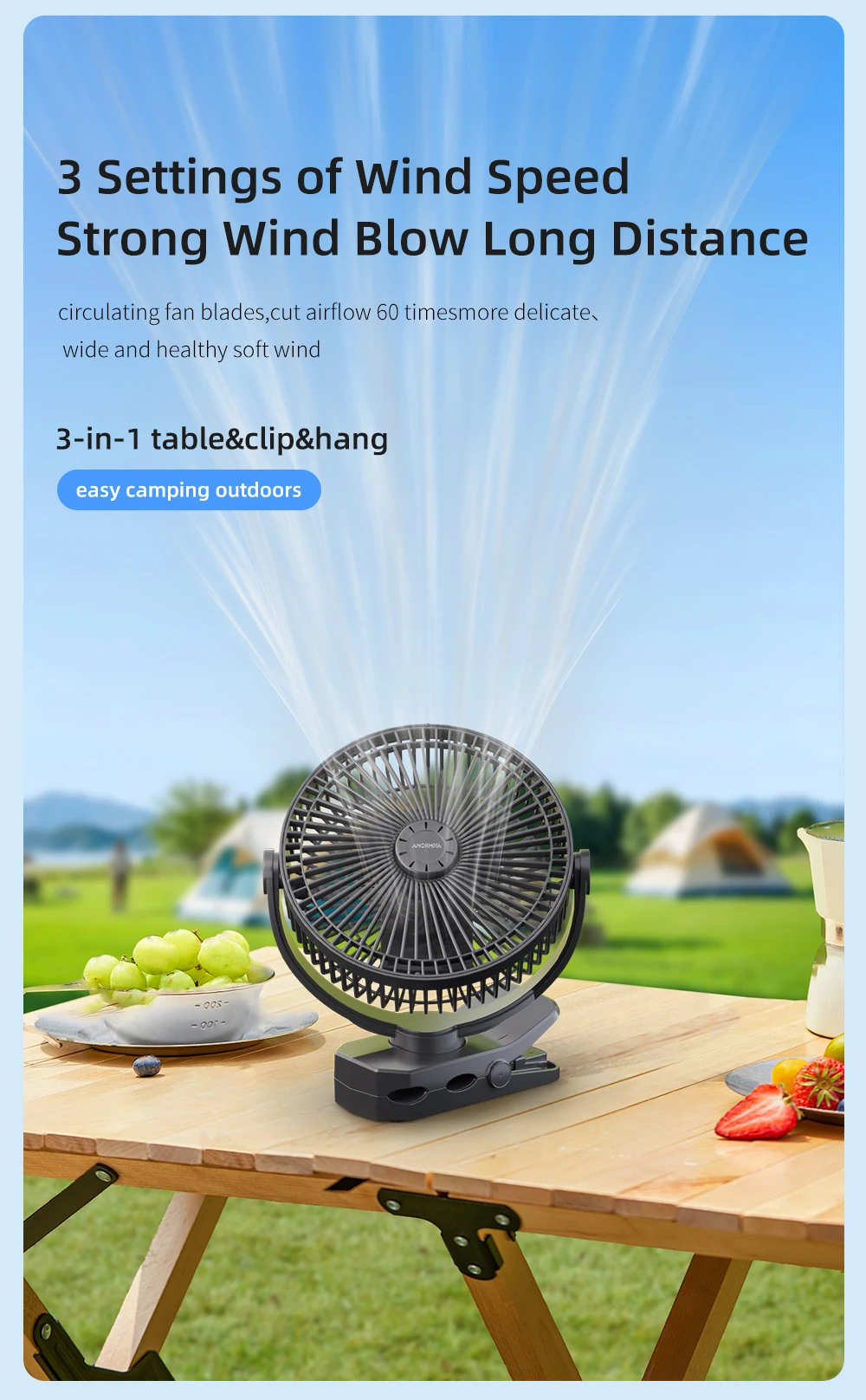 • 3 Speeds Silent Strong Wind, Fast Cooling And Quiet Design