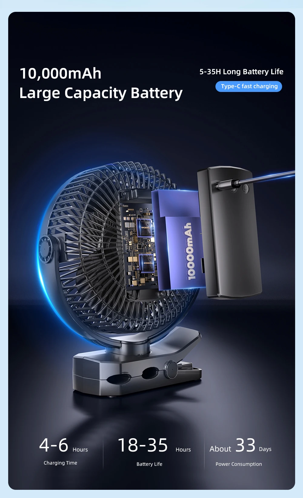 • 35H Long Battery Life, 10000mAh Polymer Lithium Battery Of Good Guality