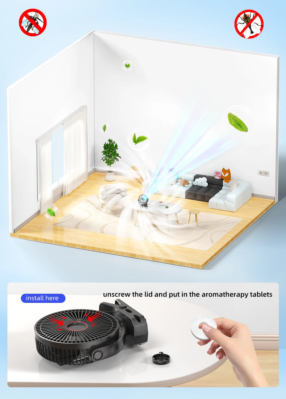• Aromatherapy Pads Or Mosquito Repellent Liquid Can Be Added