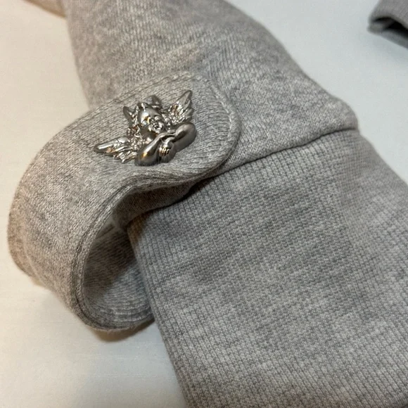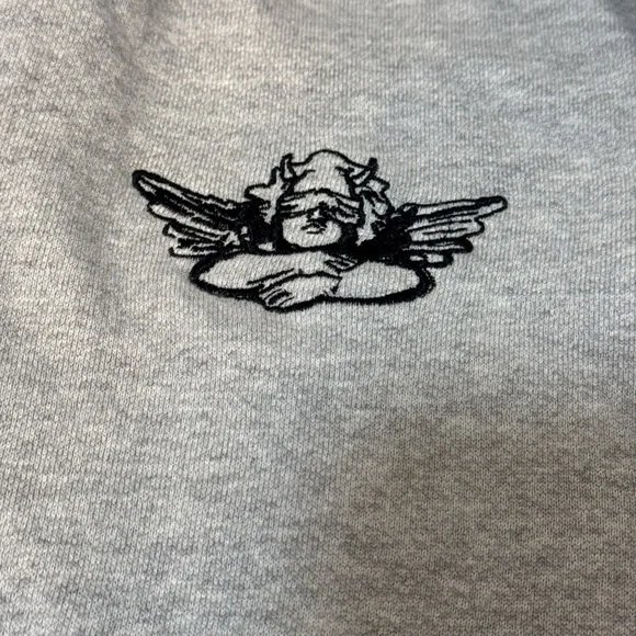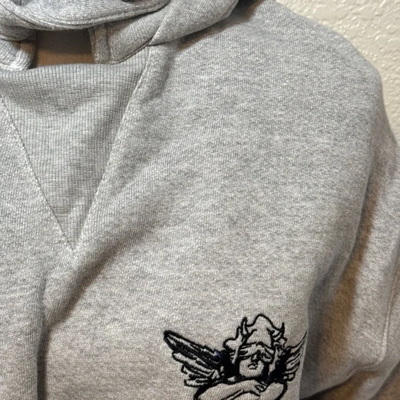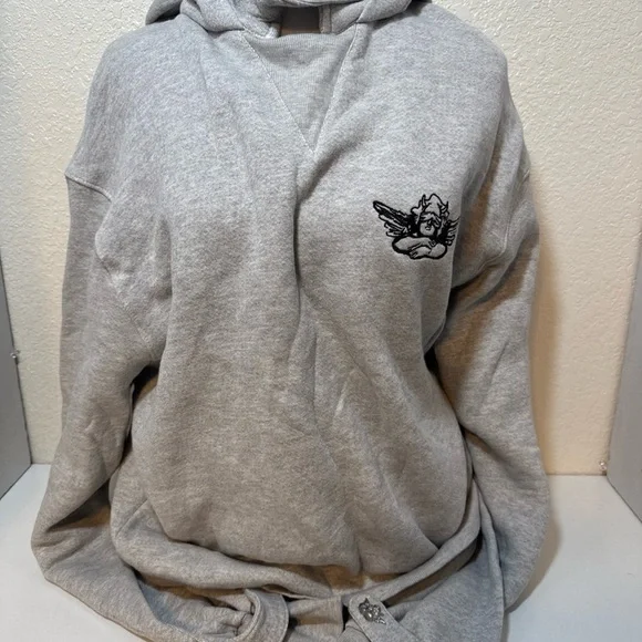 This women's hoodie from the brand boys lie features a unique "Angel Blindfolded" theme, showcasing a character wearing a blindfold. The pullover style sweatshirt in gray color is designed in a regular size small, with the note that it runs big. Perfect for activewear, this Boy's Lie hoodie is a cozy and stylish addition to your wardrobe.