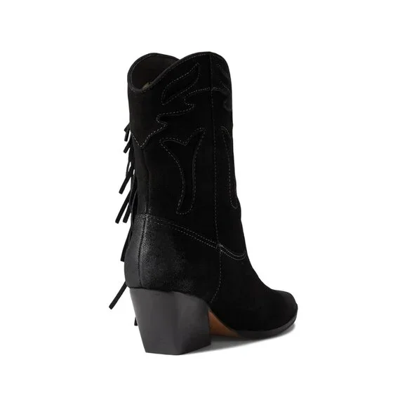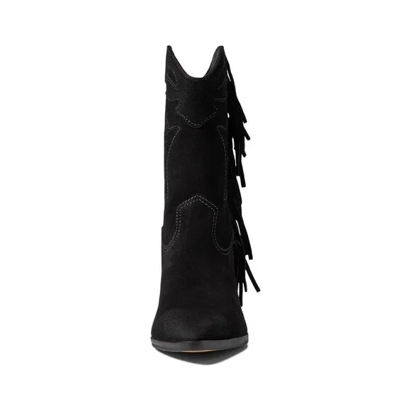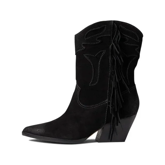Dolce Vita Liona Black Suede Western Cowboy Fringed Ankle Boots - NEW IN BOXThe glamorous Dolce Vita® Liona boots will appeal to the fashionista within you with their western design and fringe detail.Leather upper.Textile lining and insole.Pull-on style.Pointed toe.Block heel.Stitched detail on the shaft.Fringe detail on the side shaft.Measurements:Heel Height: 2 1⁄4 inWeight: 15 ozCircumference: 14 inShaft: 9 1⁄2 in20% OFF WITH FREE SHIPPING - ON SAWYER RODE OUTFITTERS (Link in bio)