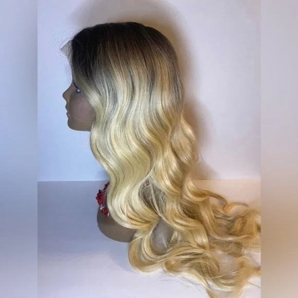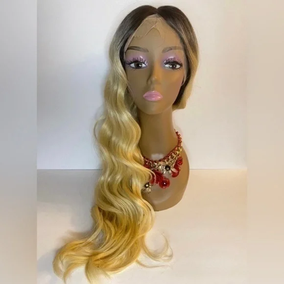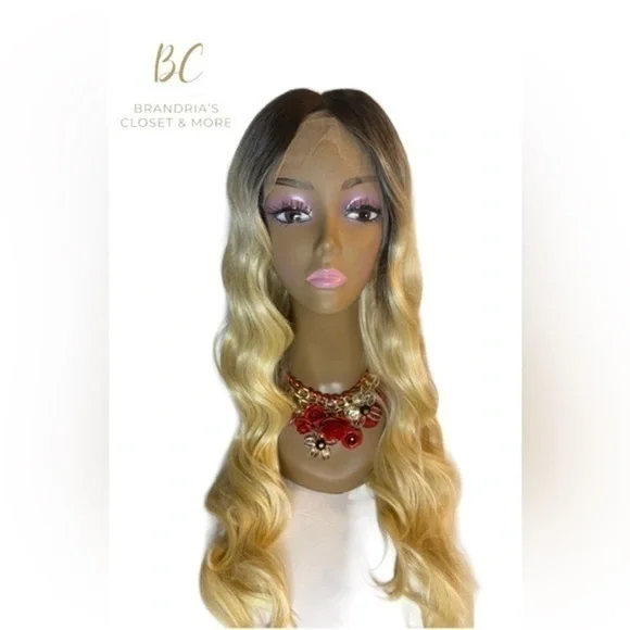 NWOT Synthetic Ombré lace front wig. This wig has combs and adjustable straps. Cap size is medium. Swiss lace. High temperature fiber. Heat up to 320 degrees. 150 % density. Approximately 30” long. Due to different lighting wig can appear lighter or darker. This wig is brand new without tag. Smokefree and Pet free environment. Thank you! Item-BC7201