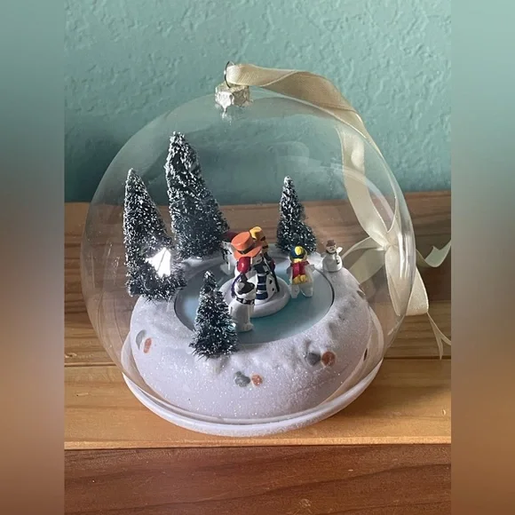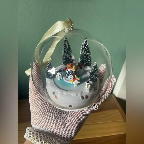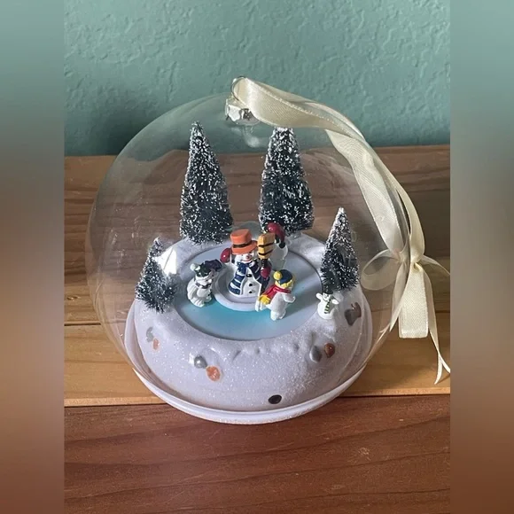 Add some holiday charm to your collection with this Mr. Christmas Glass Scene Ornament from 2009. The ornament features an adorable animated scene that rotates while playing 25 different holiday songs. Made of glass and shaped like an animal, this ornament is perfect for any holiday enthusiast. Hang it on your tree or display it on a shelf to add some festive cheer to your home. Don't miss out on this unique piece to add to your holiday collection!