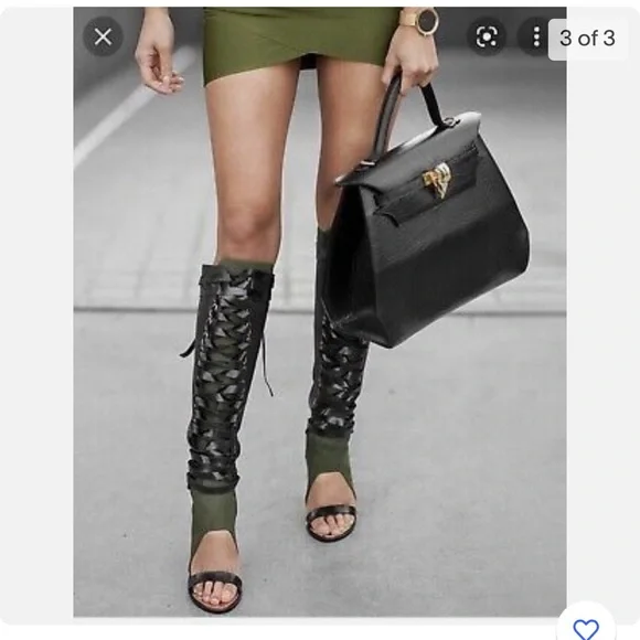 Ivy Kirzhner Alps Open Toe over the knee boots IVY KIRZHNER Alps' Open Toe Over the Knee Boot Thick leather laces thread through gunmetal grommets up to the top of an over-the-knee boot then wind down the leg, crossing over the calf to knot nonchalantly at the side for style with attitude. A wide-open vamp and metal-tipped toe perfectly balance out the rich leather, making this boot perfect for adding edge to your transitional fall wardrobe.5" heel
