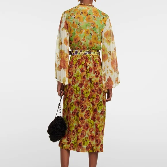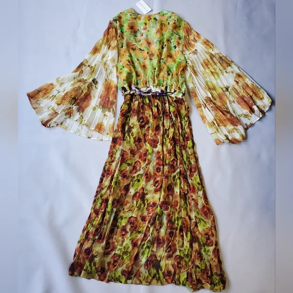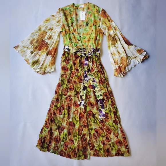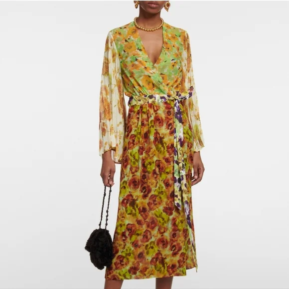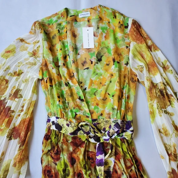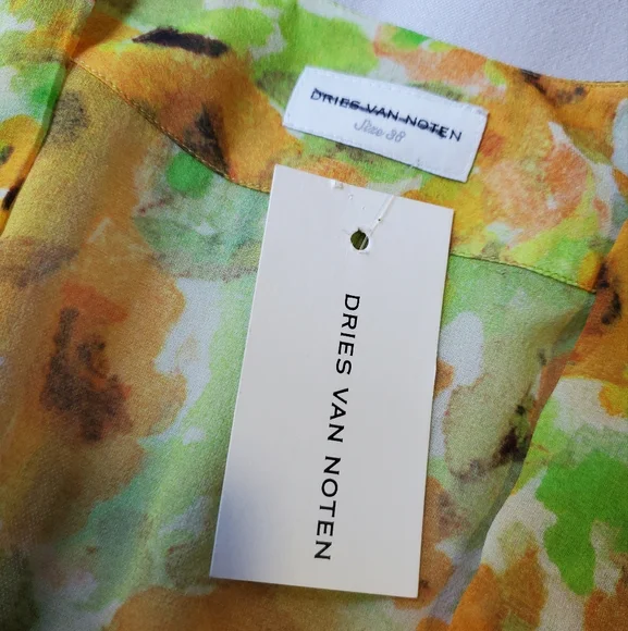 NEW$1,230 DRIES VAN NOTEN Floral Georgette Wrap Dress Sz FR 38 (US 6)Embrace elegance with this stunning floral wrap dress. The flowing bell sleeves add a touch of sophistication.Dries Van Noten's overt maximalism is brought to life in printed designs that are often abstract and always eye-catching. Decorated with a patchwork floral print, this georgette wrap dress ties at the waist with a belt and has a midi length.Material: 32% polyester, 52% viscose, 16% silkMade in PolandBrand New from Saks Fifth Avenue!! Strikeout to prevent returns back to Saks. 100% AUTHENTIC with Original tags!! Tags: FALL, Autumn, HALLOWEEN, Winter, Christmas, holidays. Spring, summer. MOTHERS DAY! BIRTHDAY GIFT 🎁 anniversary gift, valentine's gift, 🎅 Christmas gift 🎄 Bridal shower, wedding season, NEW YEAR 🍾, LUXURY Check out my closet for more designer and luxury brands like Ferragamo, Gucci, Versace, Valentino, Jimmy Choo, Stuart Weitzman, Zanotti, Webster, Yves Saint Laurent YSL, Noten, Louboutin, Burberry, Canada Goose, Mackage, Ugg, Lacoste, Moncler, Proenza, Chloe, Prada, Yurman, Dior, Tiffany, Tory Burch, Kate Spade, Balenciaga, Off-White, Stella McCartney, Wang, Barbour, Bottega, Blahnik, Montblanc, MCM, MOTHER, Cavalli, Rick Owens, Puma, Sorel, SJP, Zimmermann, Isabel Marant etc