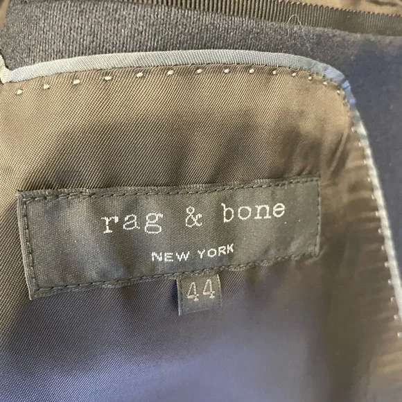 rag & bone English MOON Wool Double Breasted Tuxedo Jacket Navy & Black 44 R