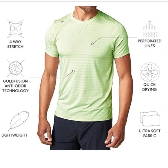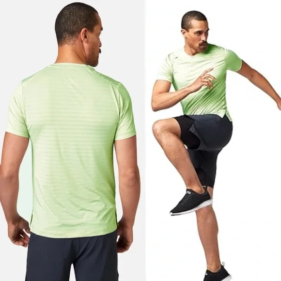 Be free in our featherweight top that is engineered for breathability and performance during your sweatiest cardio sessions or yoga class.Rhone Men's Swift Short Sleeve, Lightweight Running and Workout Shirt with Anti-Odor, Moisture Wicking TechnologyLightweight running short sleeveUltra-lightweight mesh stripe fabricGOLDFUSION™ Anti-Odor technologyBonded seam detailingSide slits for range of motionMachine wash cold with like colorsDo not bleachDo not tumble dryLine dry onlyDo not ironDo not dry cleanDo not use fabric softenerLooks new or worn once condition. Size MPlease use my photos as part of description. Due to different camera and light color of the item can be slightly different.D32