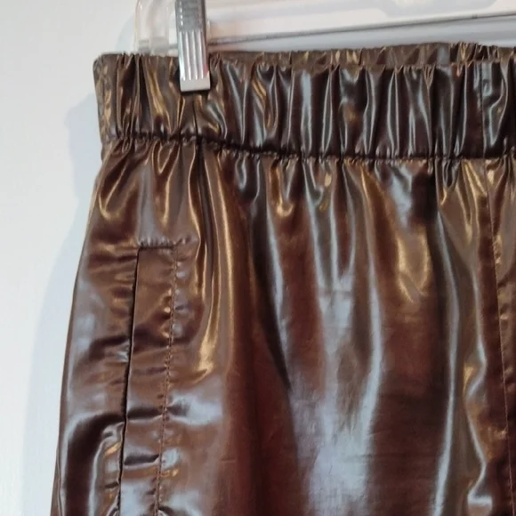 Tibi women's Gleam Wilt Pull On Jogger. EUC. Size L-Regular. Brown.Brand: TibiSize: L regularColor(s):BrownMaterial: PolyesterCondition: Excellent used condition, little/no minor signs of wear, and no stains/damage. This item is currently no longer in production from the brand. Please see all photos for details of condition and color.From the brand: The Gleam Wilt Pull On Jogger is a tried-and-tested silhouette, update for Resort in a high shine fabrication with fluidly for refined dressing, grounded in familiarity and ease. Pair back to our Soft Drape Shirting from fundamentals for sure fire way to nail your sense of personal style. This pant is a mid-rise with a full bottom. It sits just below the waist and above the high hip.FYI all items in my closet come from a non-smoking, temperature controlled, but cat-friendly home. I'm a private seller whose appreciation for style is larger than her closet. Please note all items sold as is.