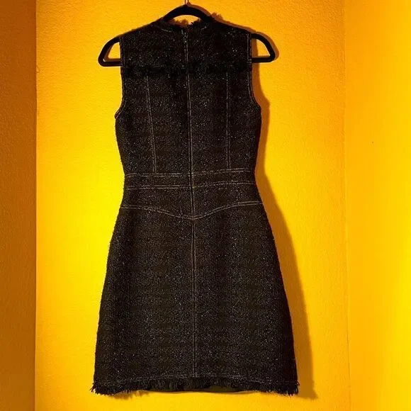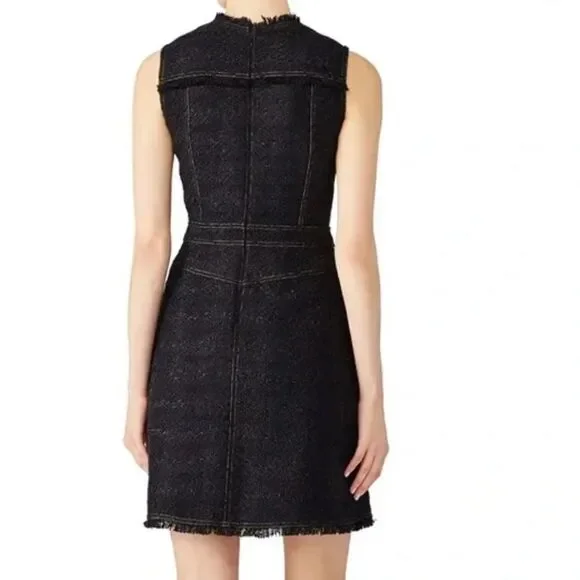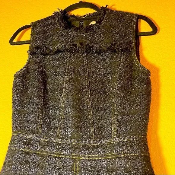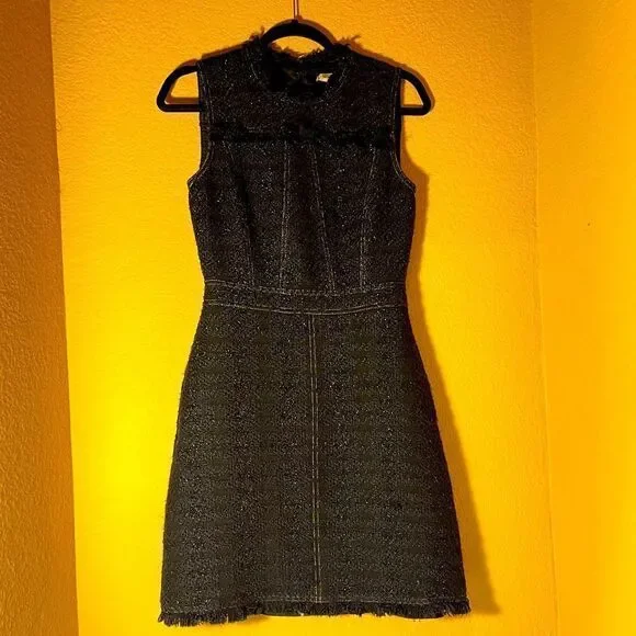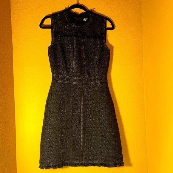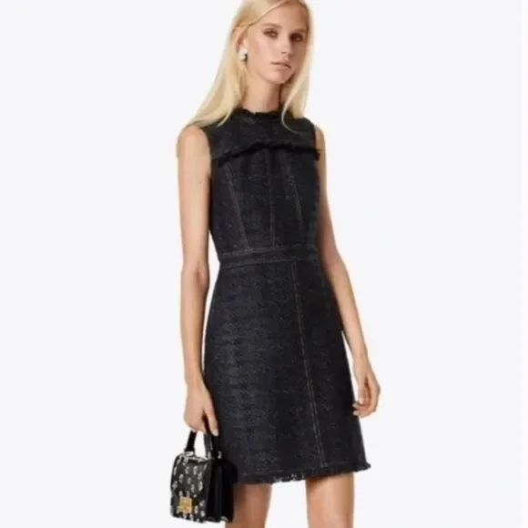 Tailored with a denim-like look, this sophisticated fringe-trimmed tweed dress by Tory Burch sparkles with every step thanks to metallic stitching. Hourglass. Sleeveless. Crew neckline. Hidden back zipper with hook-and-eye closure.CONDITIONPre-loved, excellent used conditionI’ve worn this dress 5 or 6 times and have had it dry cleaned each time.Minimal wear and some discoloration on the label from dry cleaning stickers.See photos SIZEWomen’s 2MATERIALSDress has blue, black, and gold color to ittweed (58% Acrylic, 28% Polyester, 9% Wool, 5% Lurex). CAREDry clean onlyABOUT THE BRANDSince debuting her brand in 2004, New York-based designer Tory Burch has made an impact on the fashion world with her handbags and shoes, and playful-yet-polished clothing. Today, Burch remains inspired by color and travel, with her vibrant collections bursting with prints, and her instantly recognizable double-T logo drawing from Moroccan architecture.Thanks for taking the time to check out my closet! Questions?Leave a comment below.Like this product to be notified when it is on sale or send over an offer to purchase it now.Buy with confidence: I am a posh ambassador with 5 star ratings and I ship same/next day except Sundays and Holidays and gift wrap all purchases. Check out my reviews!!