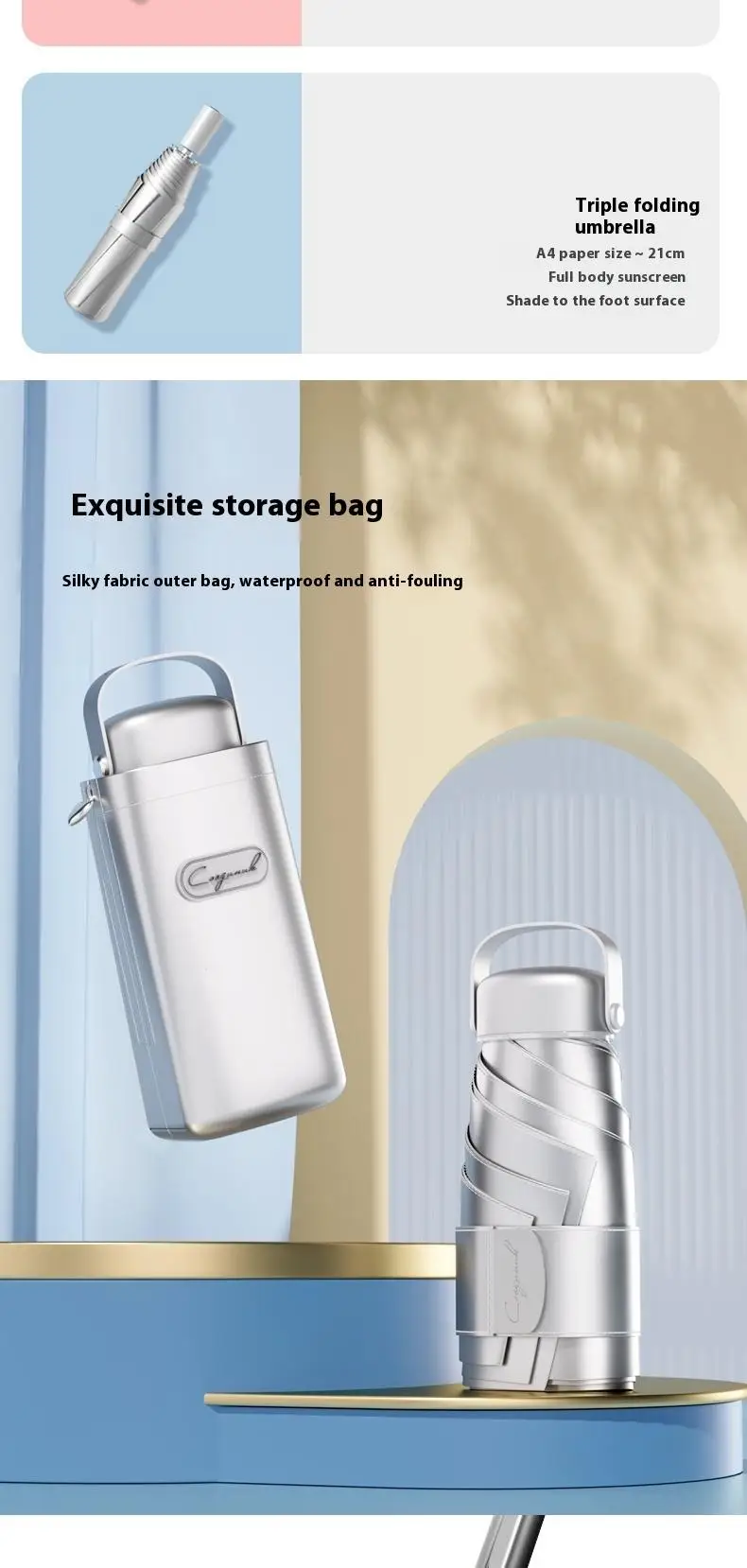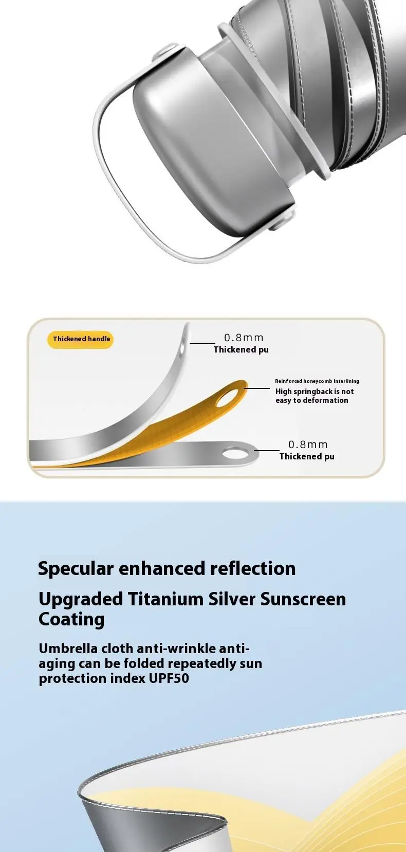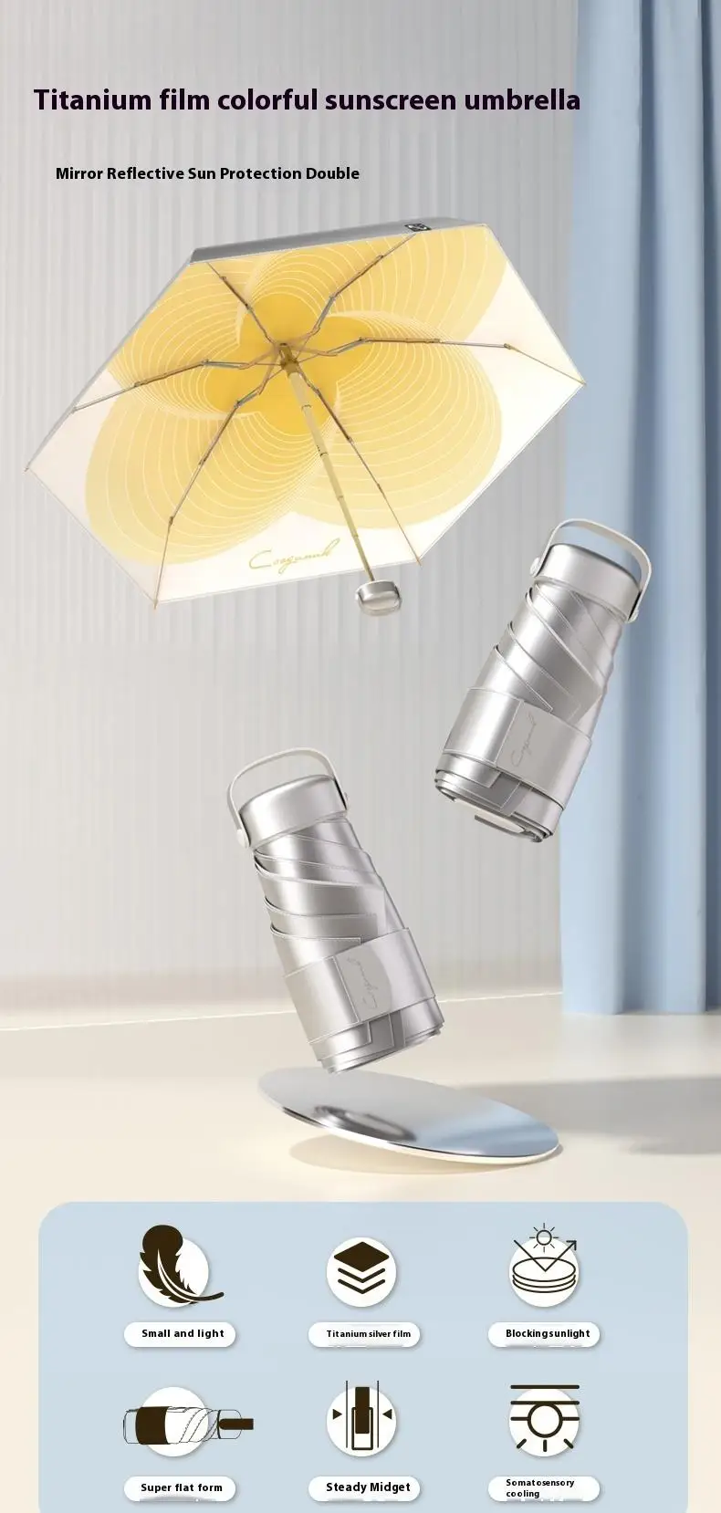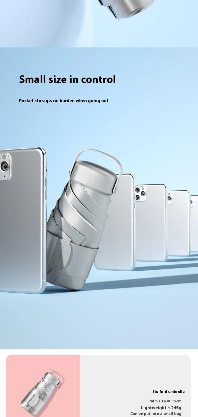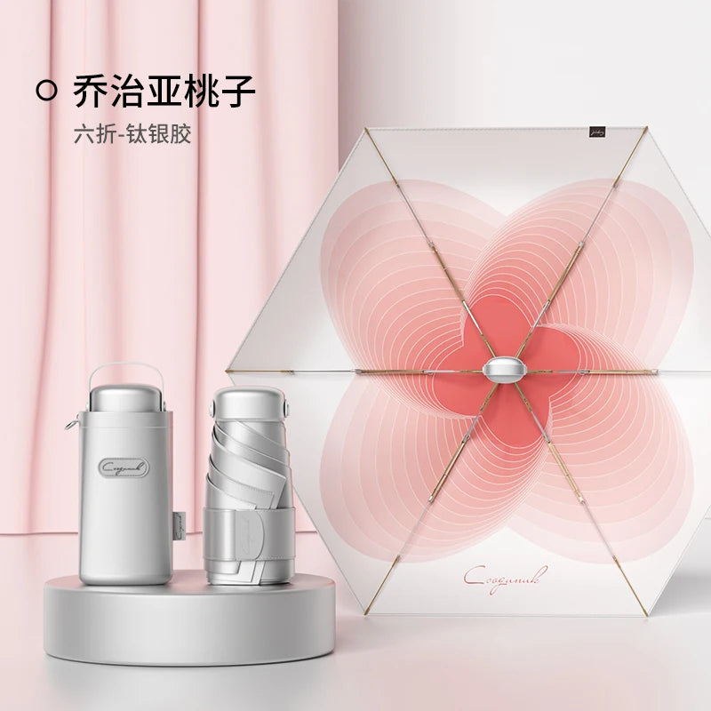 【UPF50+0 Ultimate Sun Protection】 6 - fold 6 - rib Titanium - Silver Compact Umbrella | Lightweight, Wind - Resistant & Sty