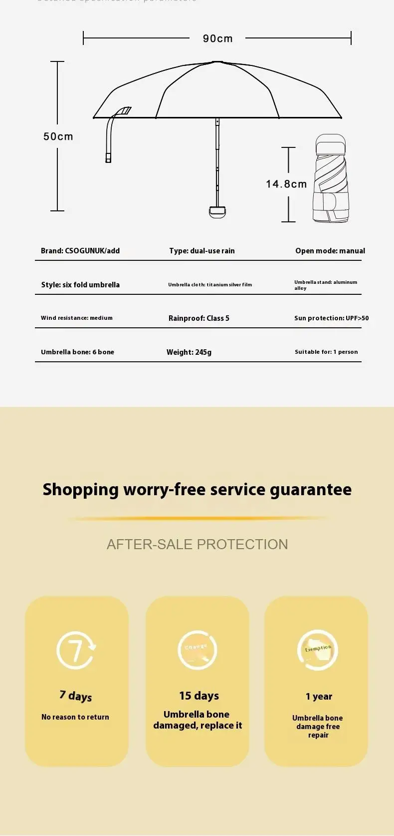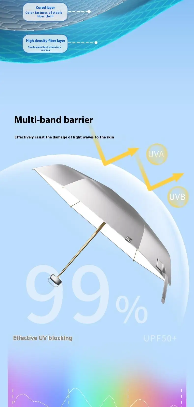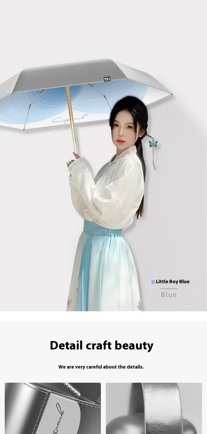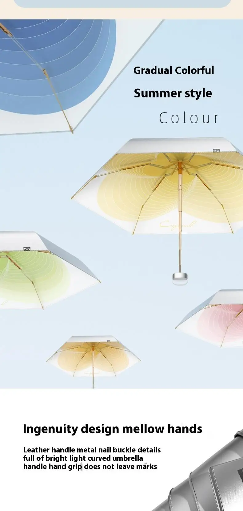【UPF50+0 Ultimate Sun Protection】 6 - fold 6 - rib Titanium - Silver Compact Umbrella | Lightweight, Wind - Resistant & Sty