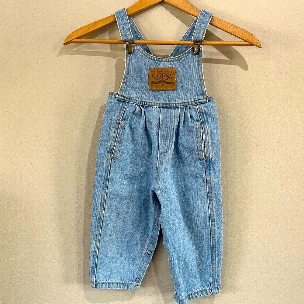 Vintage Guess Leather Patch Clip Overalls