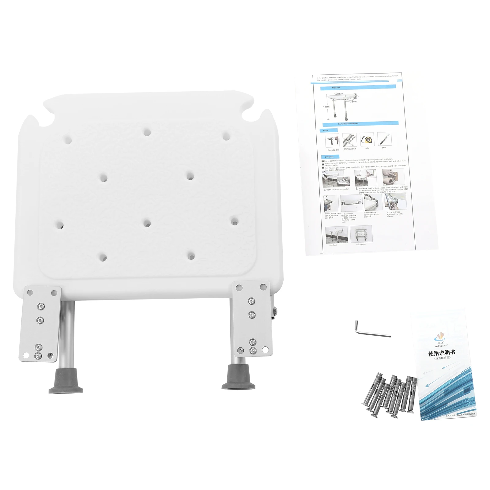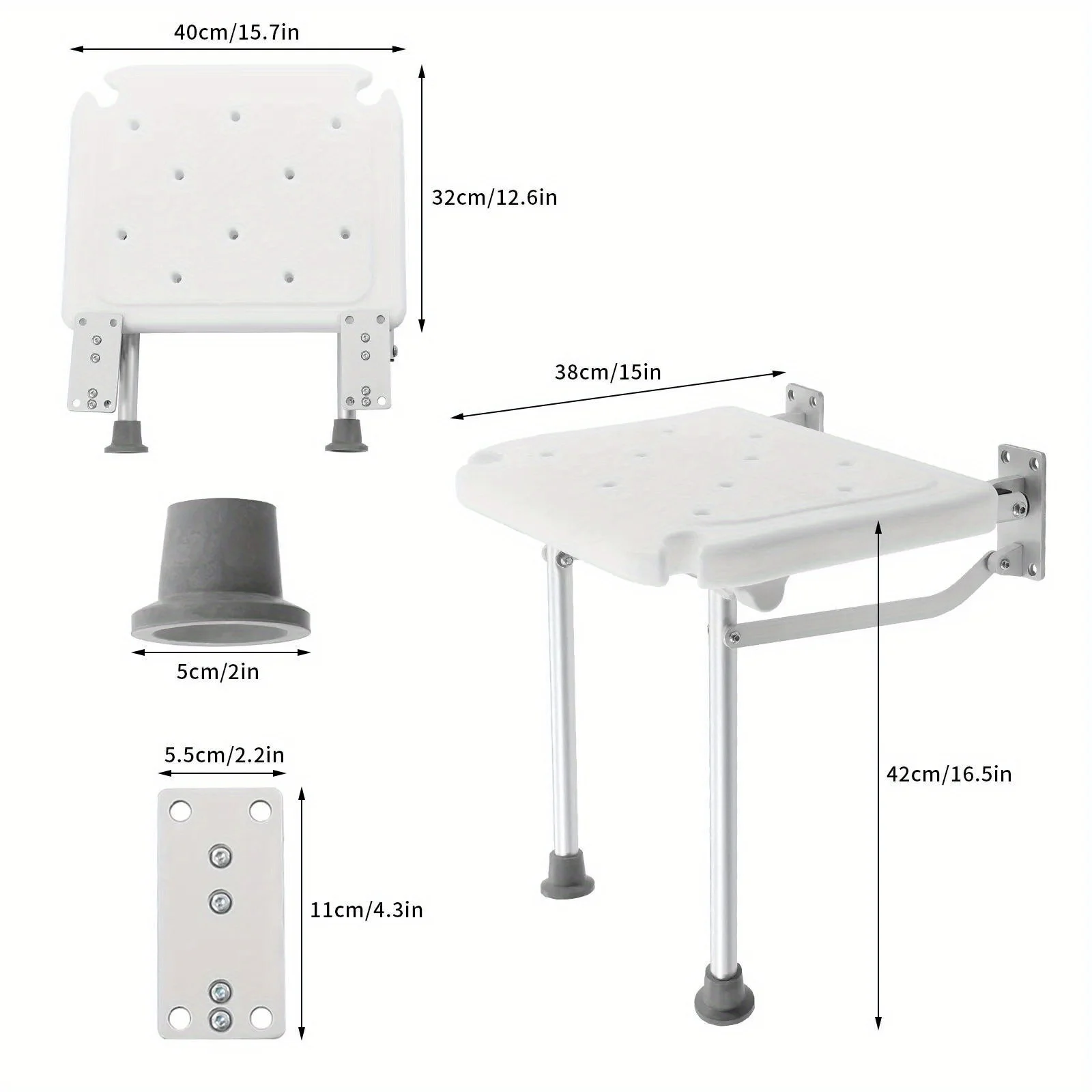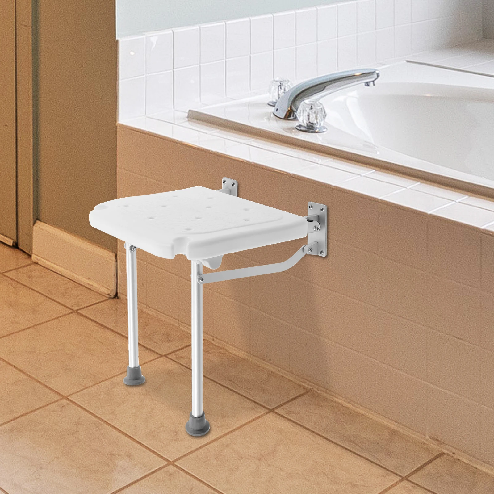 Wall Mounted Folding Shower Seat Load 100kg Shower Folding Seat W/Fold-Down Legs Bathroom Stool for Seniors Children