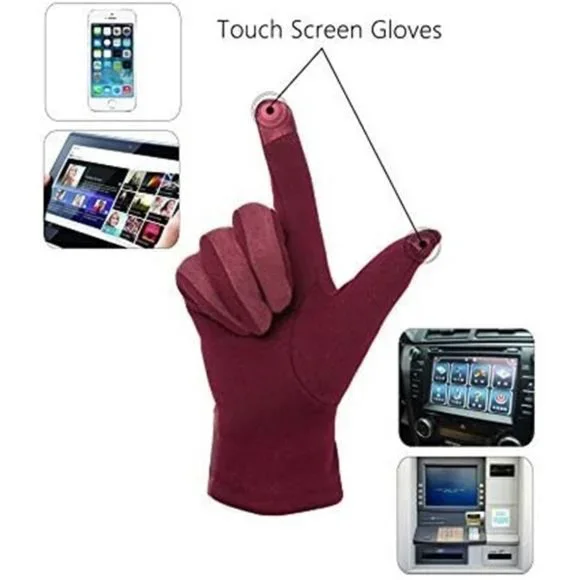 -Pull On closure-One Size Fits Most: Soft, comfortable and elastic fabric will not only keep you warm in the cold weather but also make you feel cosy. It is stretchy, light and versatile enough for any occasion. In addition, we have four colors for you to choose, including black, red, khake and blue. We believe there must be at least one pair suitable for you.-Touch Screen: We adopt touch screen technology so that it can be used for smartphone and tablet while keeping hands warm in winter. The touch screen parts are on the index fingers of both gloves and also the thumbs. They are very versatile and work well as driving gloves and outdoors on the cellphone.-Fleece Lined Thick Winter Gloves: Full lined with thick fleece, which is perfectly combined knit with leather workmanship. It will provide you with warmth and comfort in winter. Winter gloves is a great partner for outdoor work in cold days. Our warm knit gloves keep hands warm during winter sports and outdoor activities without adding bulk.-Fashion Gloves with Bowknot Design: It is designed with lovely bowknot for women and ladies, which makes it chic, stylish and elegant. It suitable for women in all ages, because we think all ladies like to go for fashion and trend. And it's easy to go with your clothing, no matter which kind of occasion you wanna go.