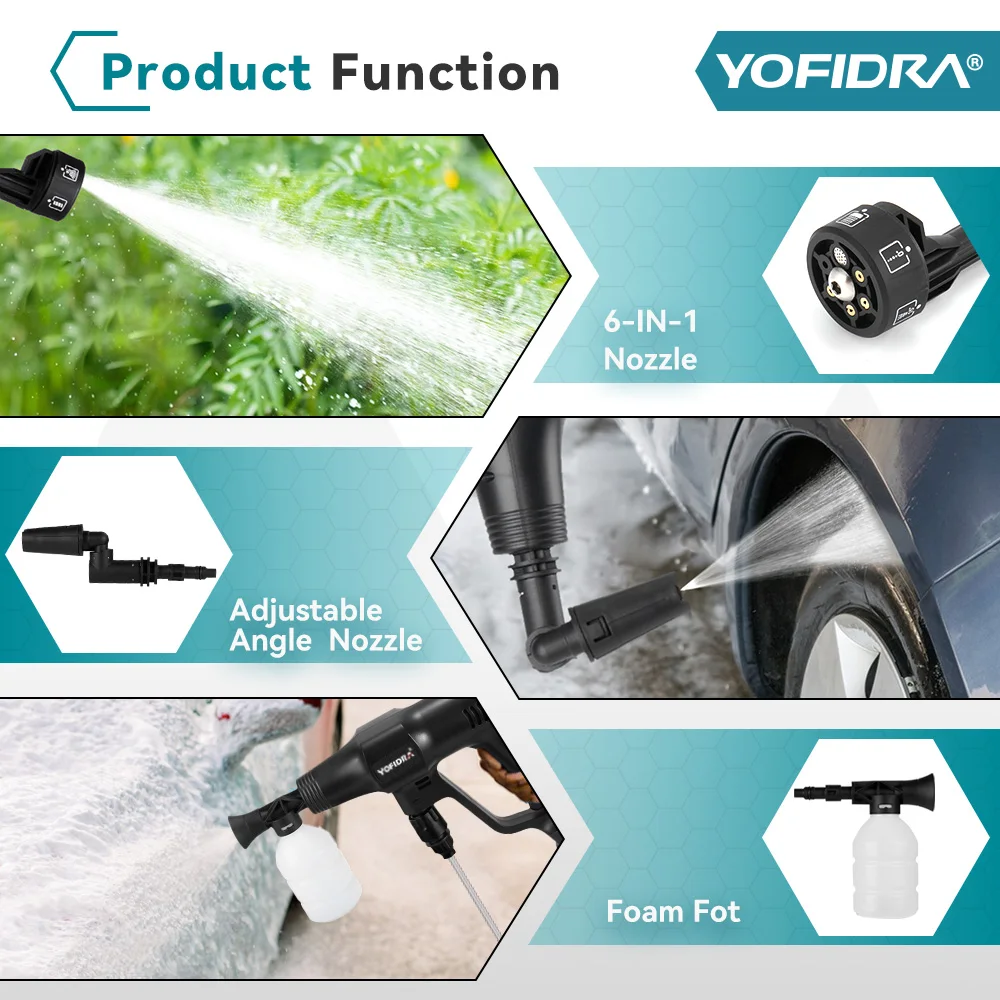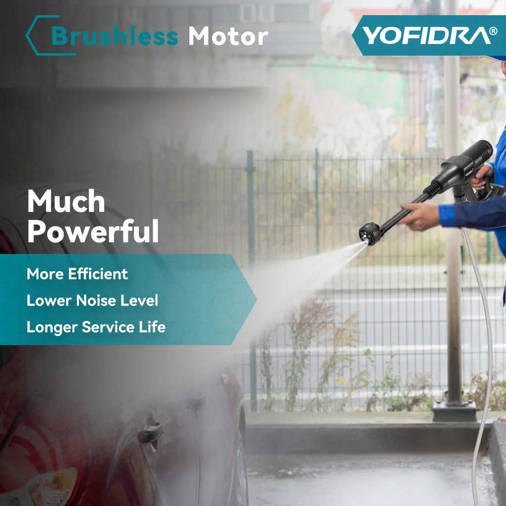 Yofidra 200Bar Brushless Electric Water Gun 3 Gears Cordless Rechargeable Car Garden Cleaning Tools For 18V Battery